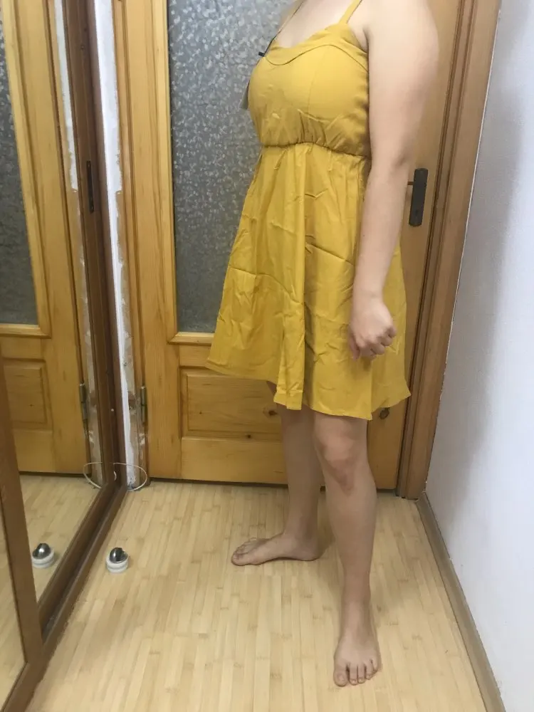Dress is beautiful! Everything looks great, sewing is really good. The length is Perfect for me (160cm). Size is better than i thought, i have 105 cm in breast and it fits very well! And colour is lovely! I totally reccomend this dress, love it!