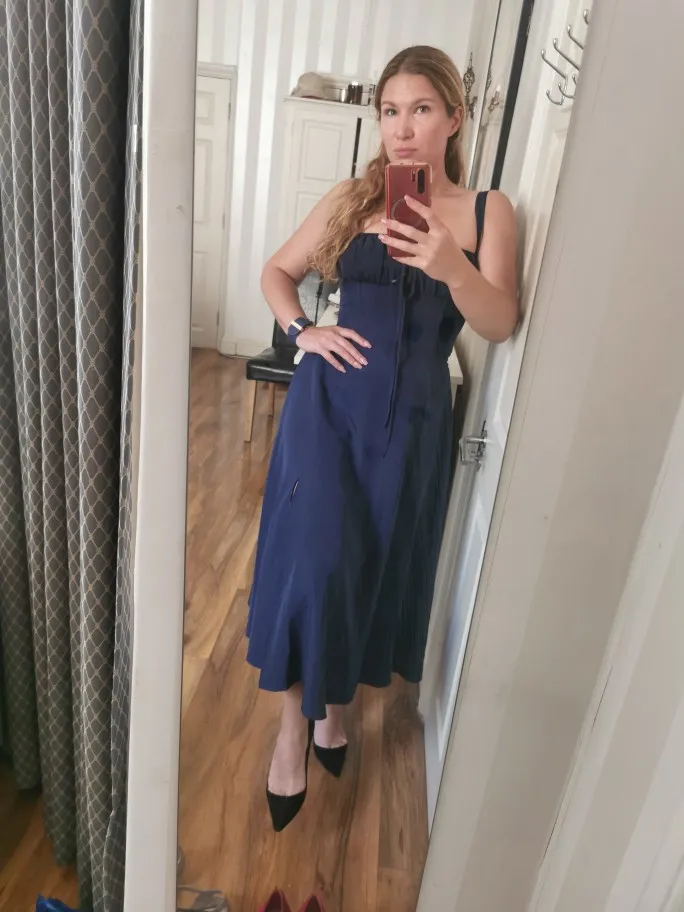 Very nice dress, got complicated a lot in it. Its syntetic which i was first concerned about but looks gorgeous really. I'm 167cm 95-72-95, 62 kg and m fits perfect