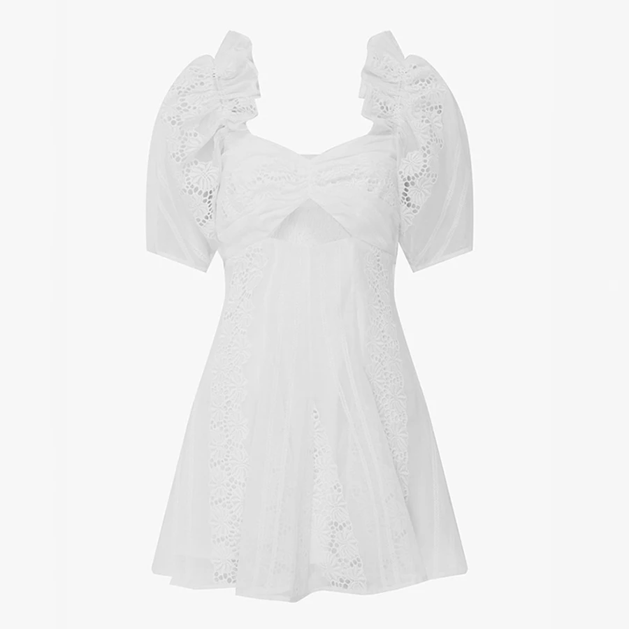 FREE SHIPPING Summer Solid White Simple Women Dress Hollow Out Strapless Off Shoulder Backless Crop Top Sexy Puff Sleeve Mini Dress New JKP2546