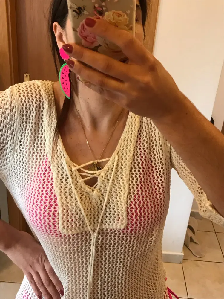 Delivery is very fast-12 days, packed in package. Whole. The tunic is cool, soft very, the color is bright. At 46 villages freely. As a gift bracelet and rubber on the hair. The store is good, i'm happy with the goods.