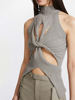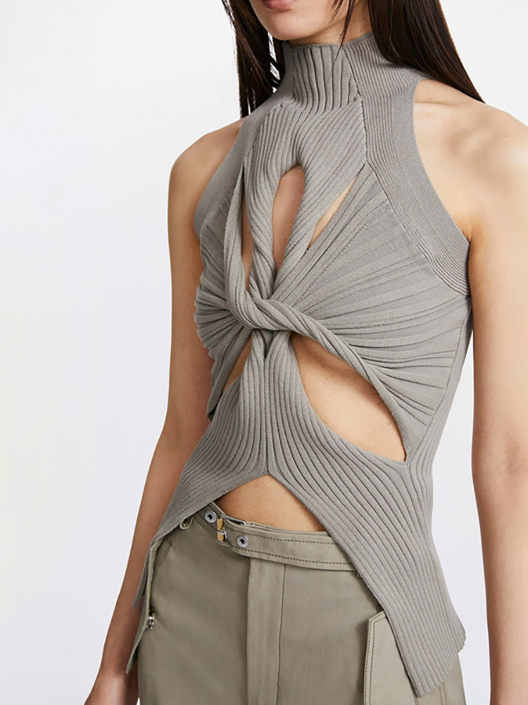 FREE SHIPPING Summer Tank Tops Knitted High Collar Hollow Out Sleeveless Solid Color JKP6061