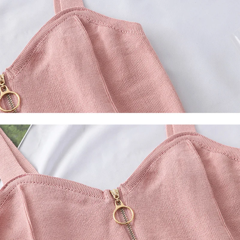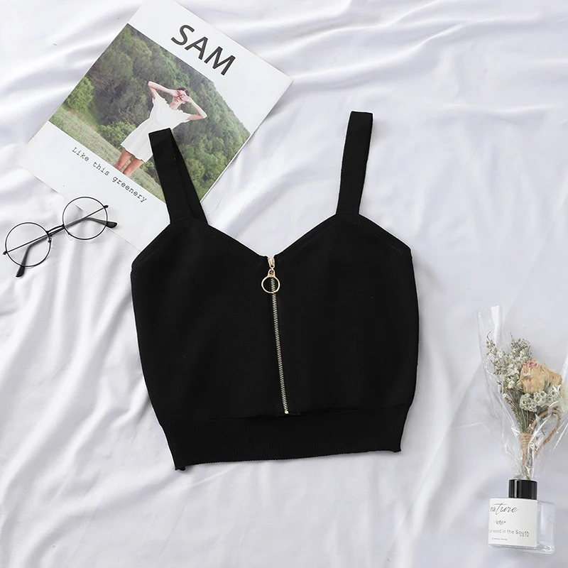FREE SHIPPING Summer Women Tank Tops Club Sexy Zipper Crop Top Girlish Knitting Camisole Ladies Sleeveless Solid Simple Camis JKP2239