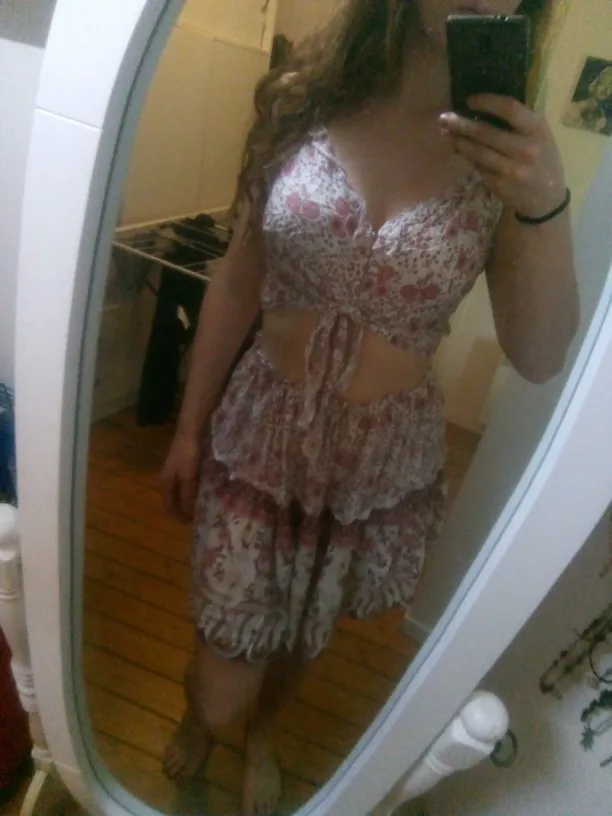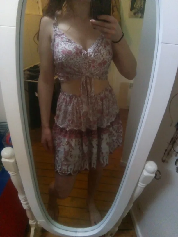 If I could give this more than 5 stars I would! It's so absolutely cute on! Very unique outfit. I can't wait to wear it out. I am 5'2, 140lbs, 34c and ordered a medium and it fit perfectly.The skirt can be a bit short,but I wear little shorts under skirts anyways. You won't regret this at all.