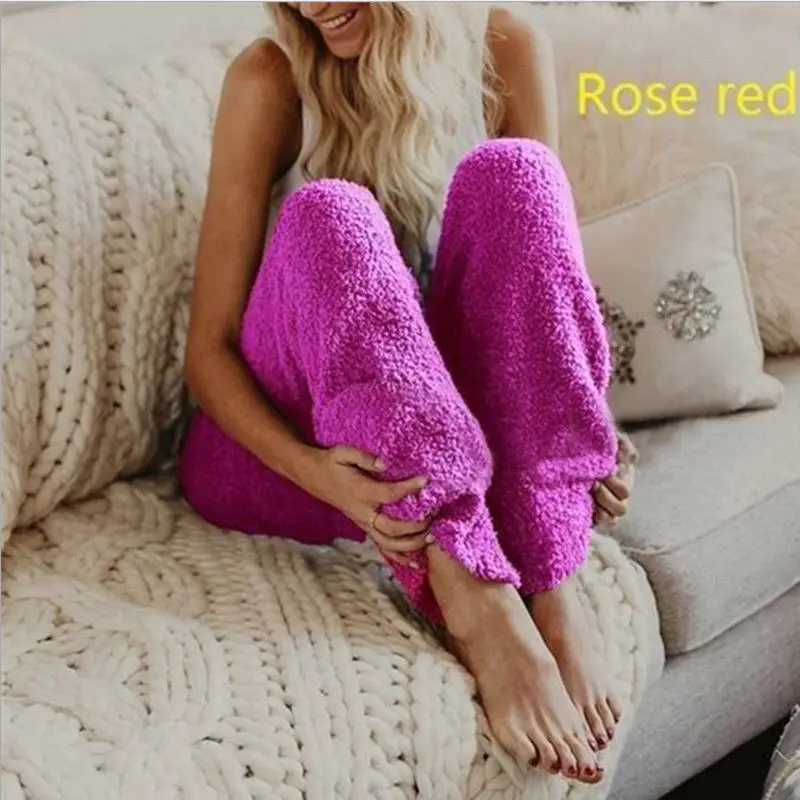 FREE SHIPPING Sweat Pant Fluffy Faux Fur Casual JKP1381