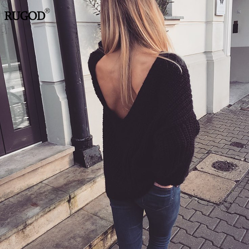 FREE SHIPPING Sweater Outfit Winter Backless V-neck Pullover Knitted JKP2768