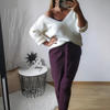 The neckline of the sweater is deep, but still different from the photo of the store. Oversize style. Beautifully bare shoulders even in my not thin format. In the composition of actyl and cotton. The mating is medium large. V neckline is the same front and back, wide enough. My parameters 98-77 shoulders 38-39 height 170 The length of the sweater is good, the sleeve is normal. It looks better in a rolled-up version. In general, a very cool model!❤