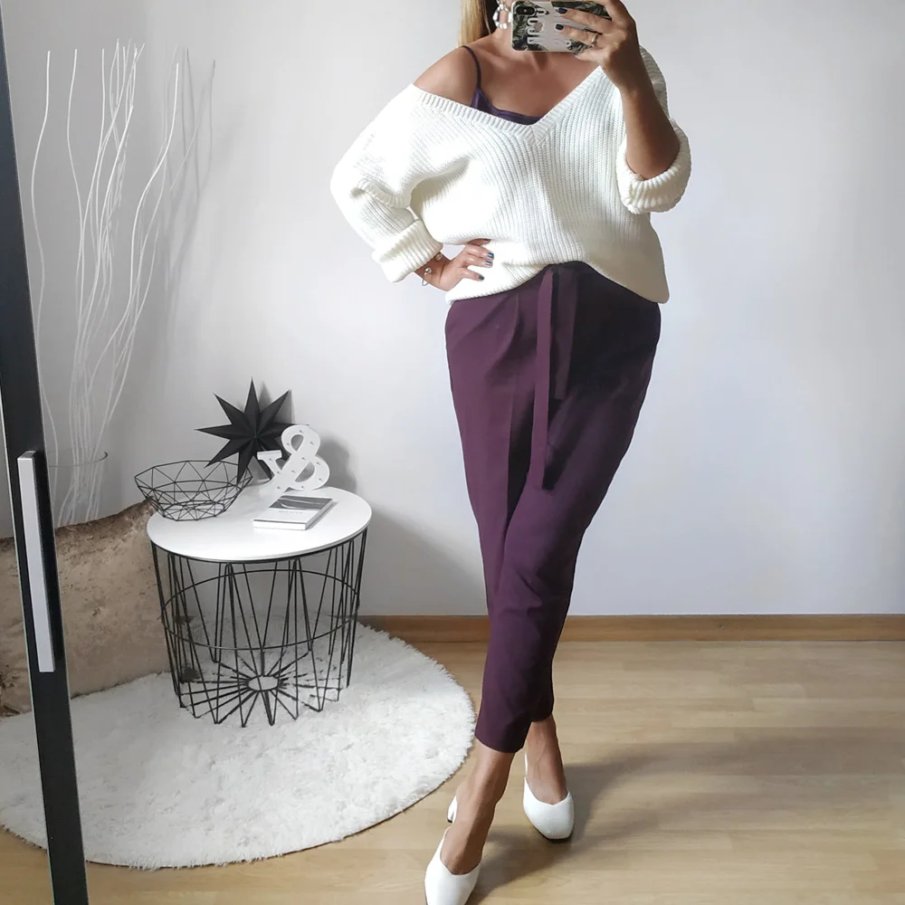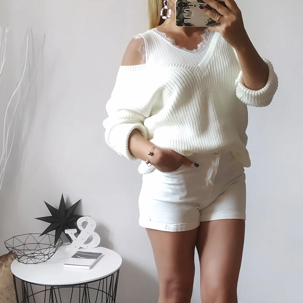 Sexy sweater /double V neck women winter auturm sweater /has elasticity /oversized sweater