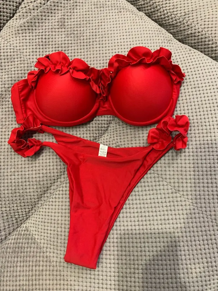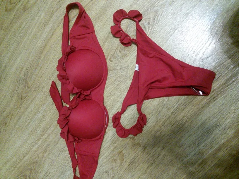 Swimsuit is very good. All as in the description. Came quickly. Without push-up. Came with a deformed cup. Came in one package with an inverted cup inside. Tried to smooth, it did not work. If it were not for this situation, there would be an excellent swimsuit. Sew well, the size matches. The store satisfied my dispute-so i put 5 stars.