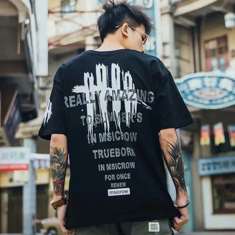 FREE SHIPPING T shirt men high street personalized t-shirt hip hop t-shirt men women couple summer blouse casual loose tshirt streetwear JKP2211