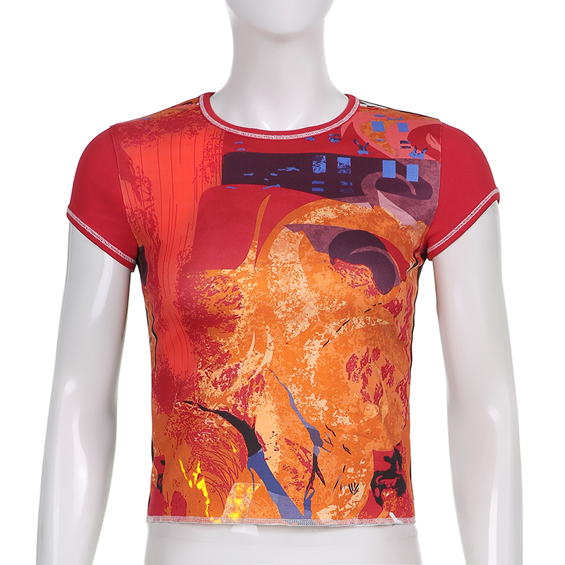 FREE SHIPPING T-Shirts Retro Print Patchwork Vintage Aesthetic JKP4774
