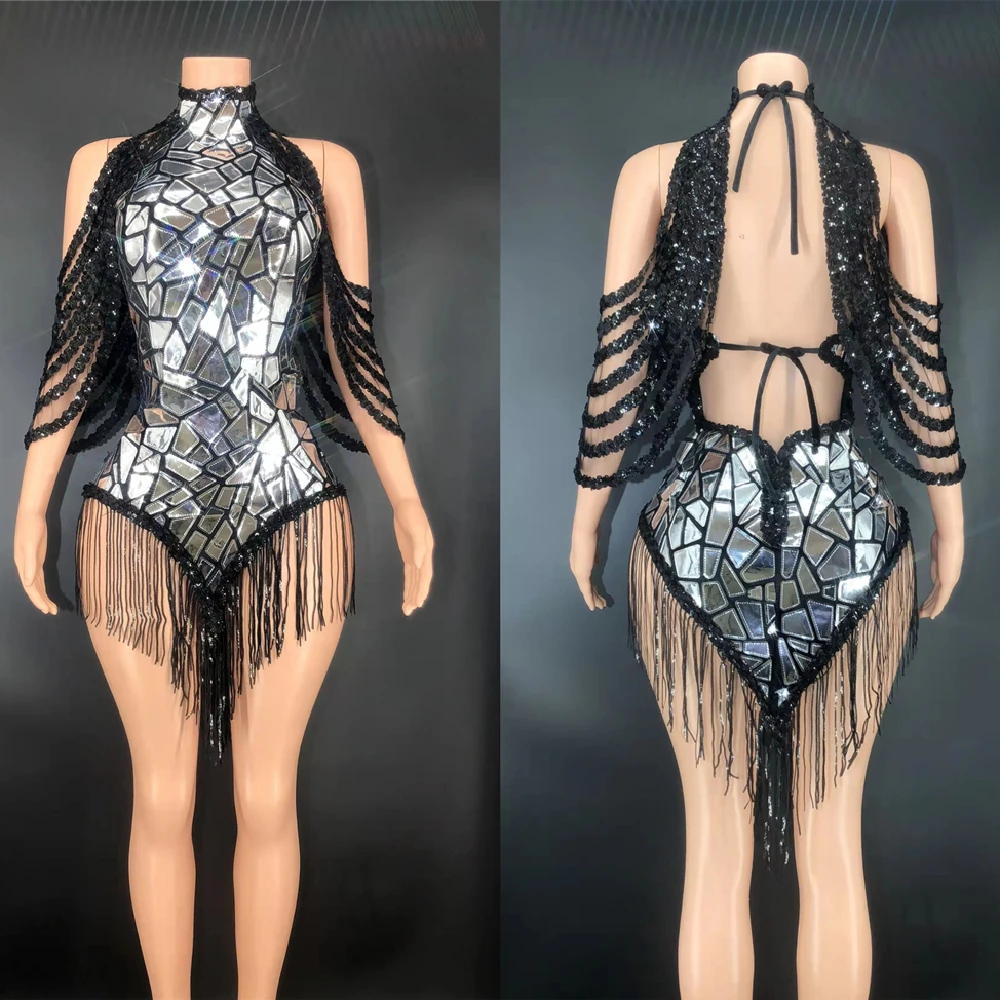 FREE SHIPPING Tassel Sequins Bodysuit Dancer DJ Nightclub Party Outfit JKP6071