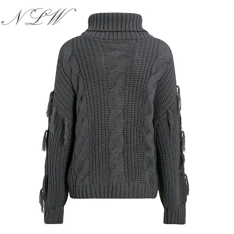 FREE SHIPPING Tassel White Winter Sweater Women Casual Loose Chic Jumper Grey Turtleneck Autumn Pullover Oversize Sweater Mujer JKP2115