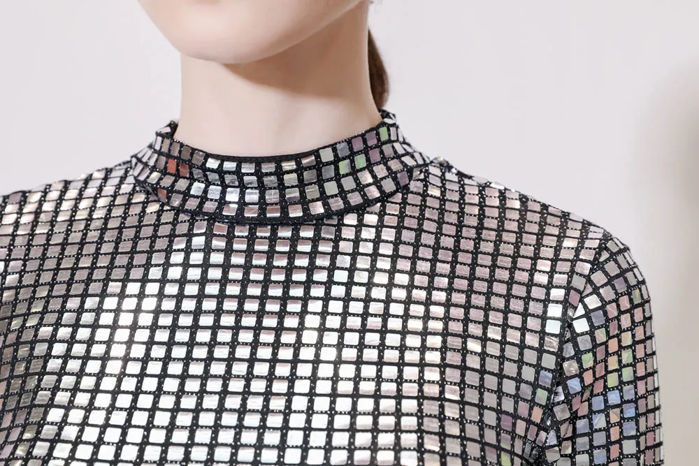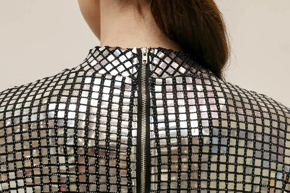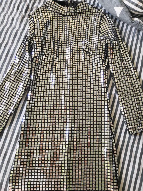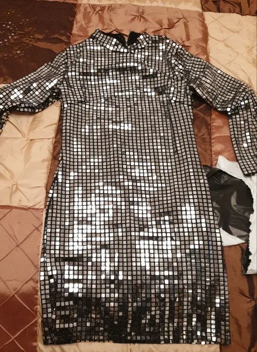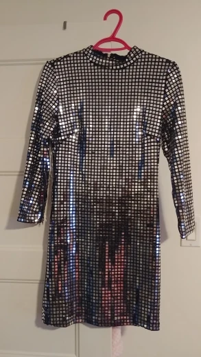 Dress in size! Thought Xs to take or S, risked Xs, very good! All sequins are in place.