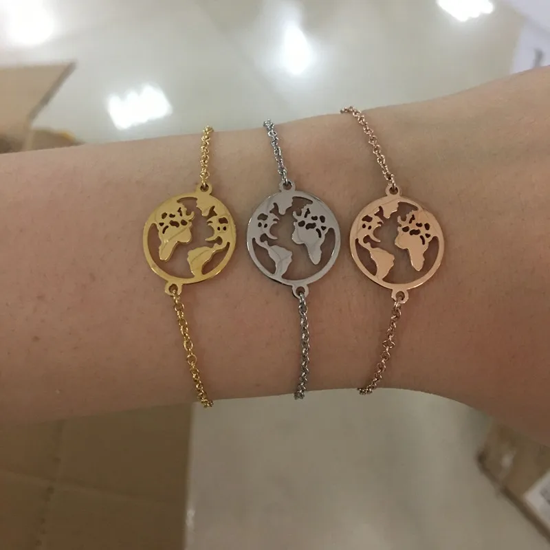 FREE SHIPPING !! The world Map Pendant Chain Bracelet JKP620