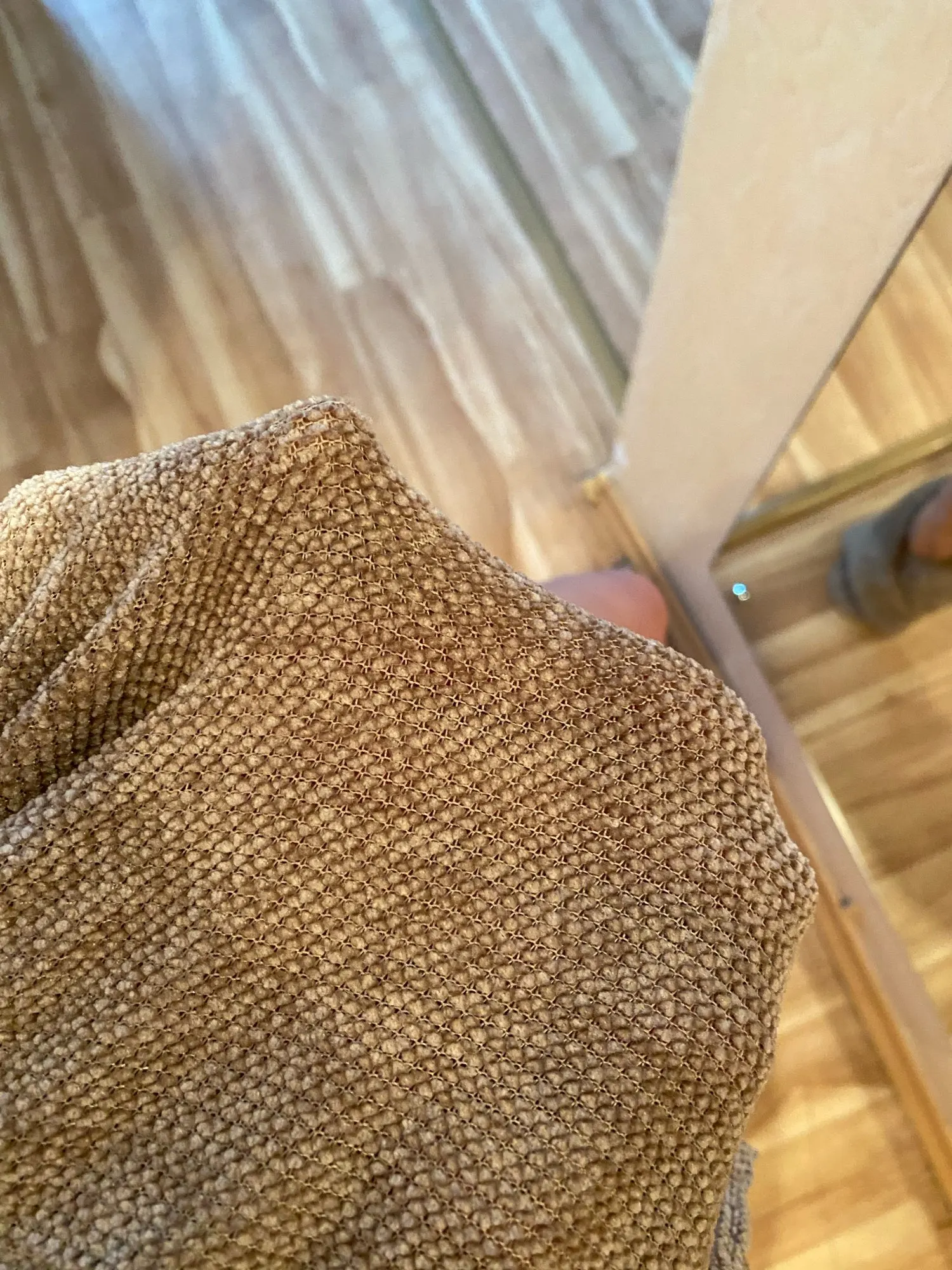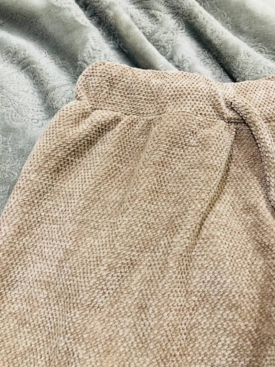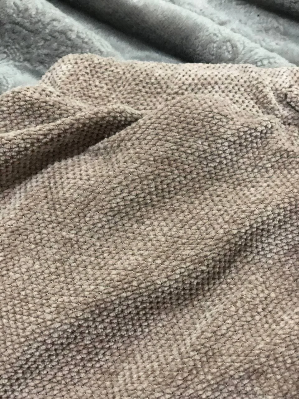 The fabric is not like velor. Looks nice, and the quality is good. Quickly dries like a plaid) I liked it.