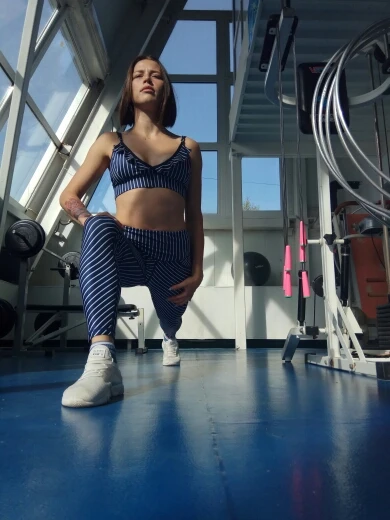 FREE SHIPPING Thin Striped Fitness Set Ruffles Push Up Seamless Sportswear Sets Bra + Leggings Pink Sexy 2 Piece Set Workout High Elastic Suit JKP2903