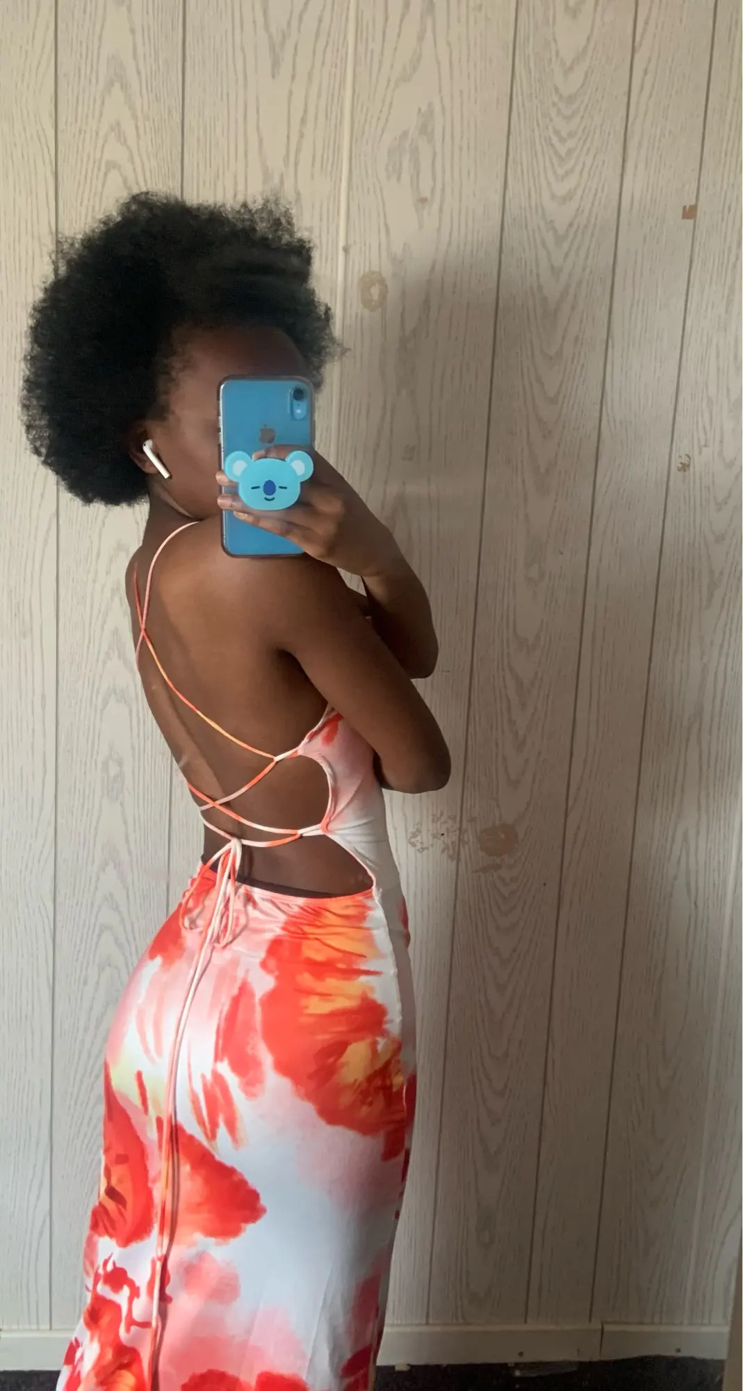 I am 5’4” and got this dress in a medium. I’m skinny but still have some thighs and waist on me and it fit perfectly. The drawstring back makes the size a lot more adjustable and the fabric is stretchy! The colors really popped and a lot of people asked where I got the dress from.