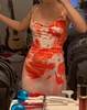 FREE SHIPPING Tie Dye Lace Up Midi Dress JKP4608