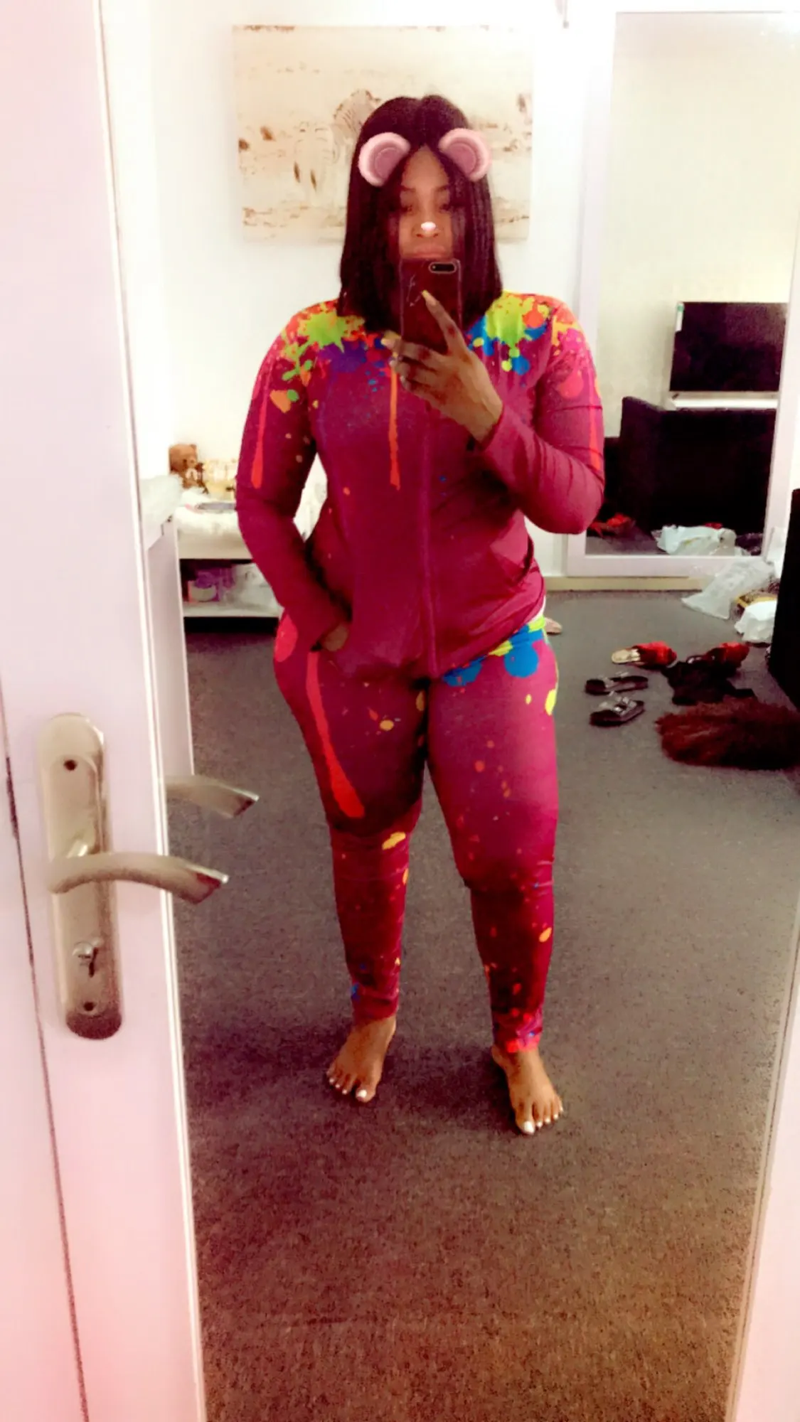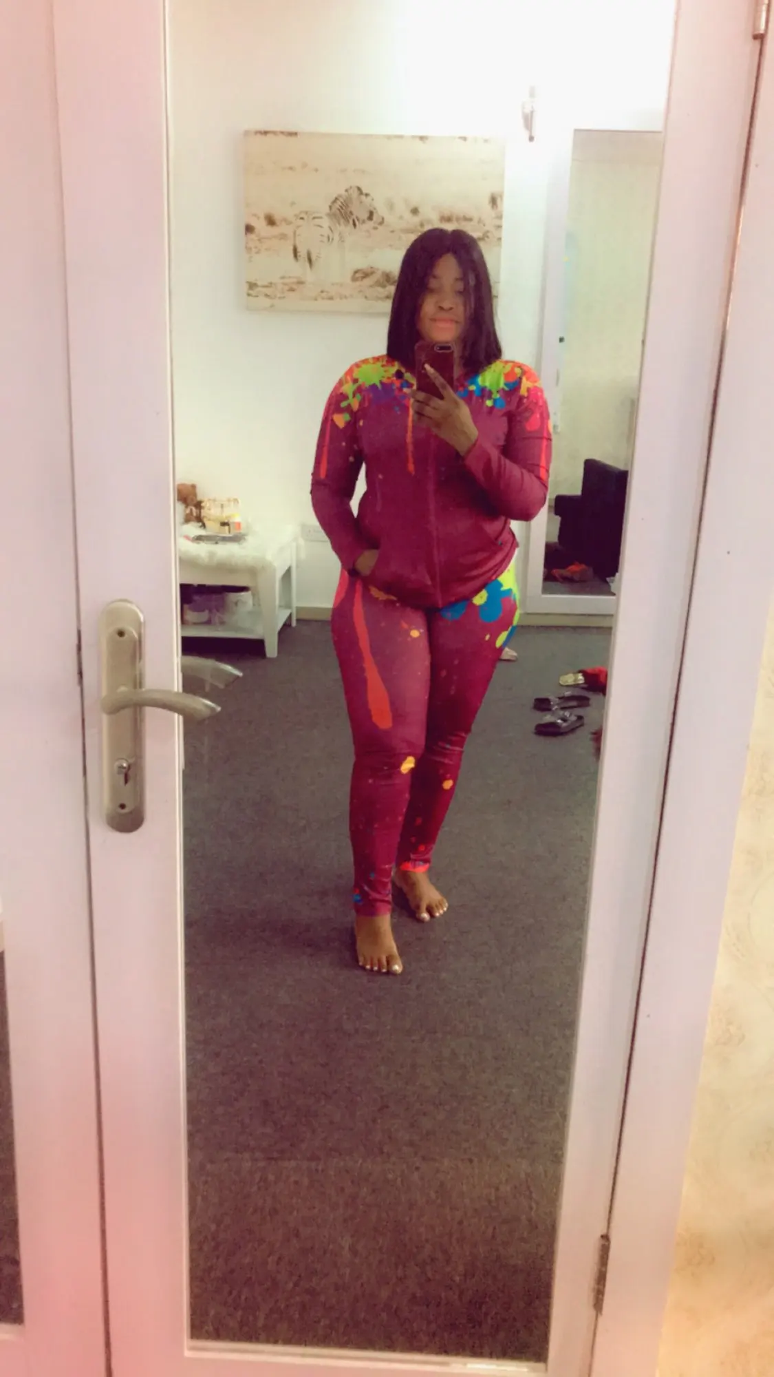 it look pretty the pants are a little big but it's ok love the colors
