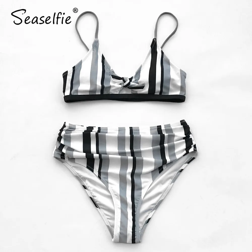 FREE SHIPPING Tricolor Stripe Print Front Bowknot Bikini Sets JKP3156
