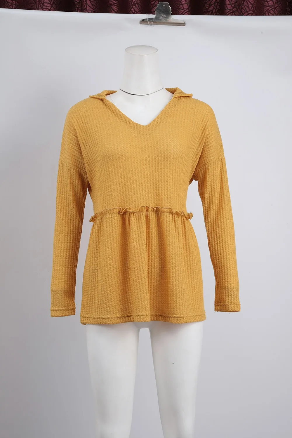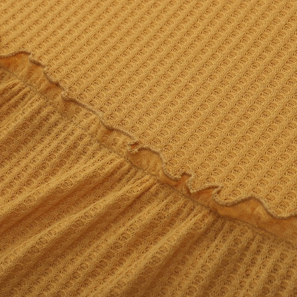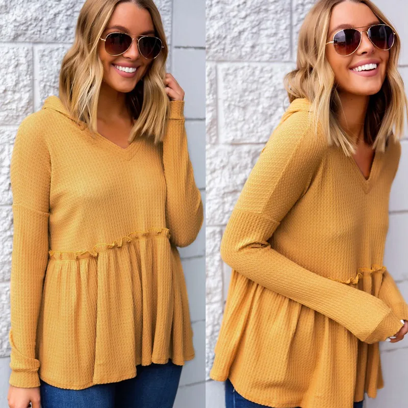 FREE SHIPPING Tshirt Yellow Knitted Sweater Ruffles JKP1383![]()