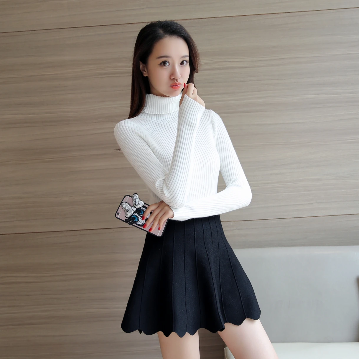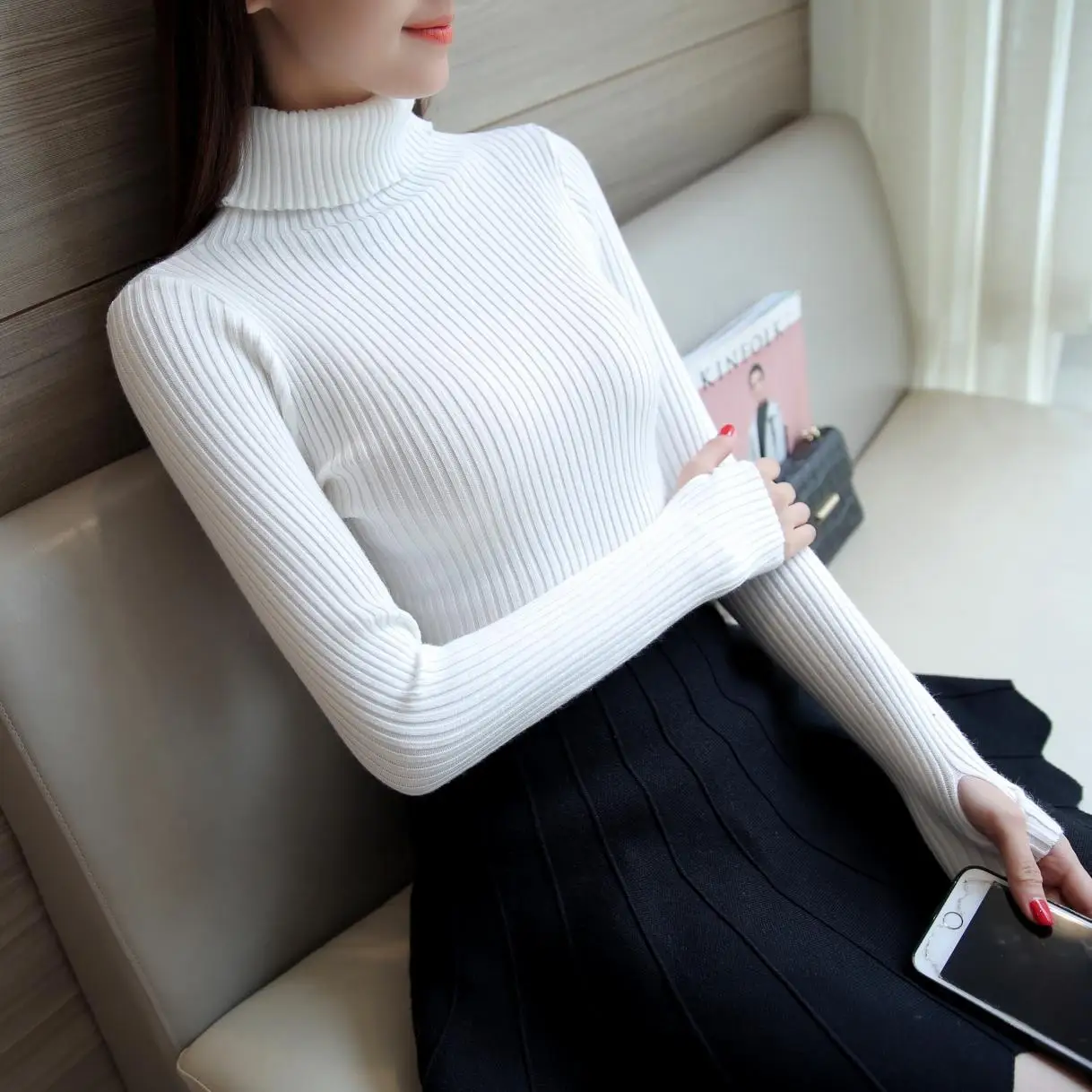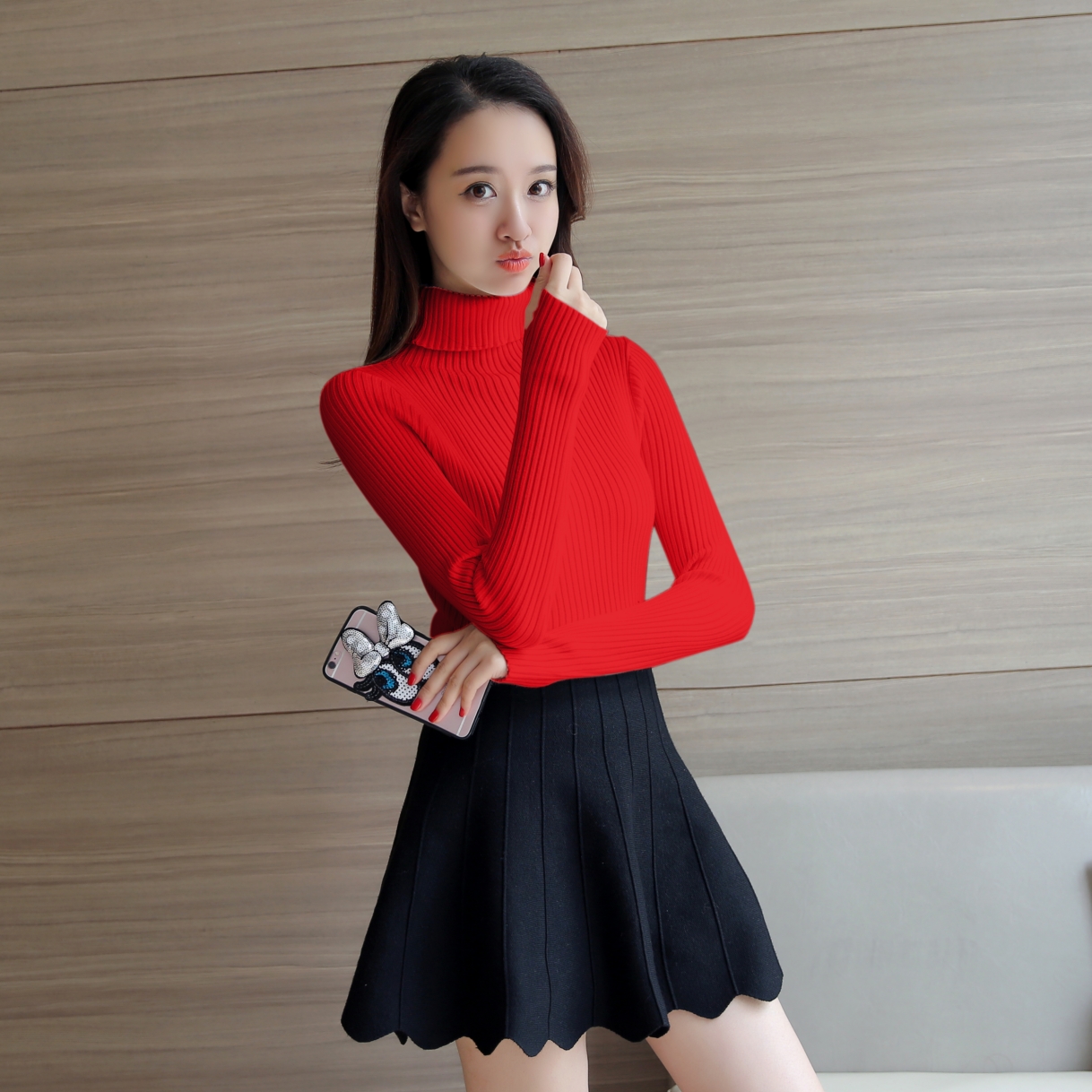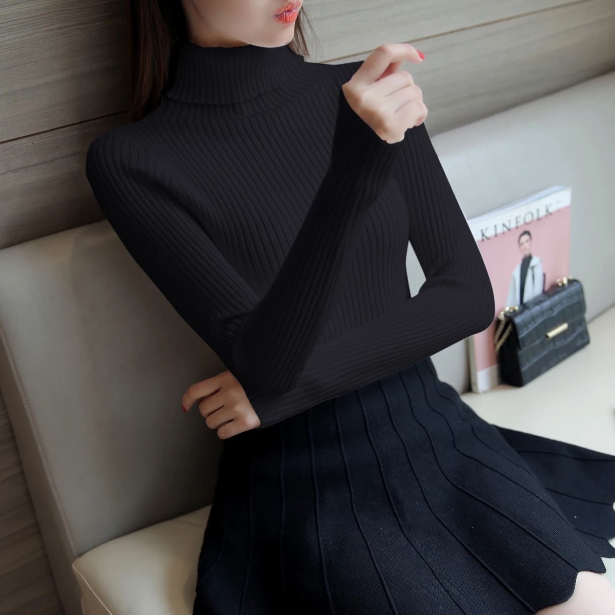 FREE SHIPPING !! Turtle Neck Women Sweater Pullover Basic Rib Knitted Cotton Tops JKP896