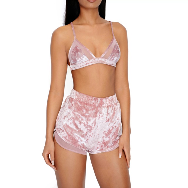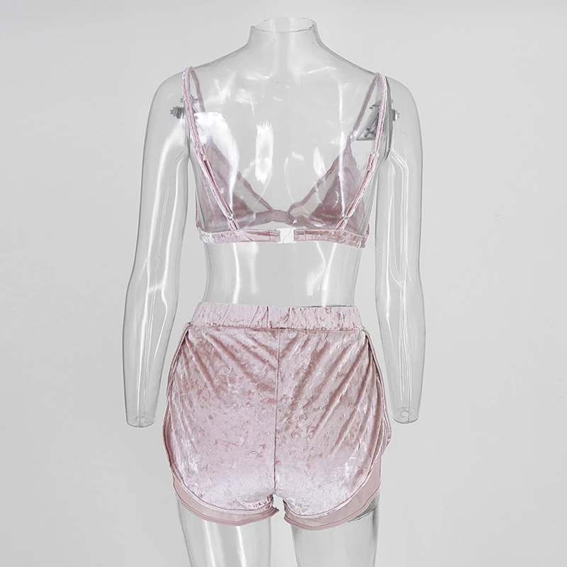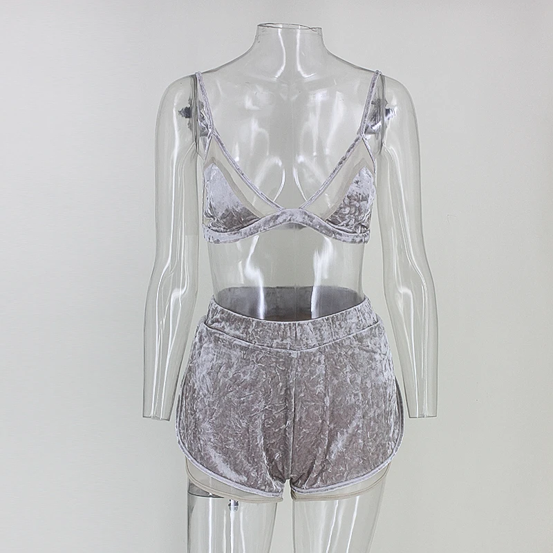 FREE SHIPPING Two Piece Set Velvet Crop Tops And Shorts JKP1161
