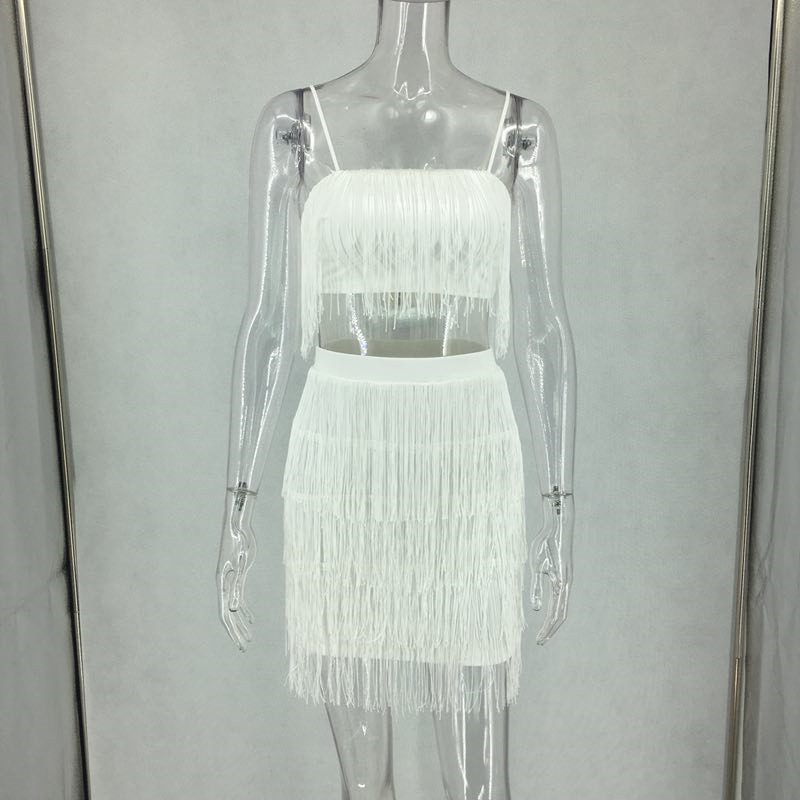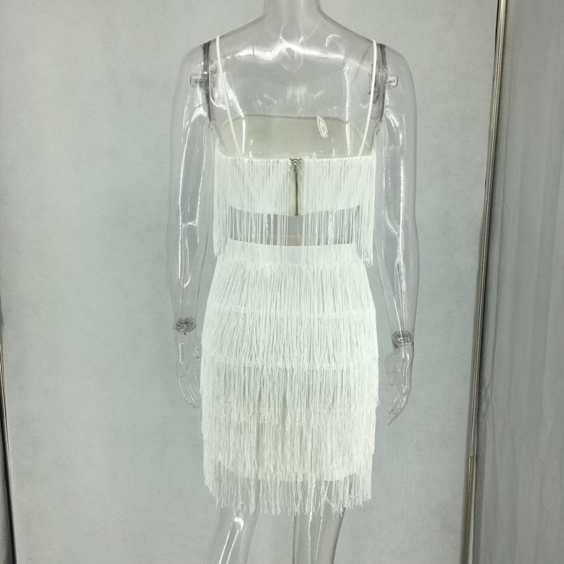 FREE SHIPPING Two Piece Short Tassel Mini Dress JKP4655