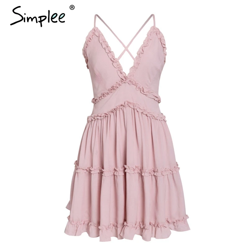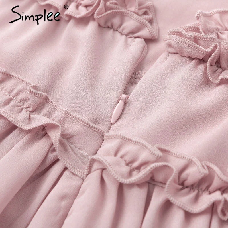 FREE SHIPPING V Neck Chiffon Pink Ruffle Dress Summer Dress 2019 JKP1391