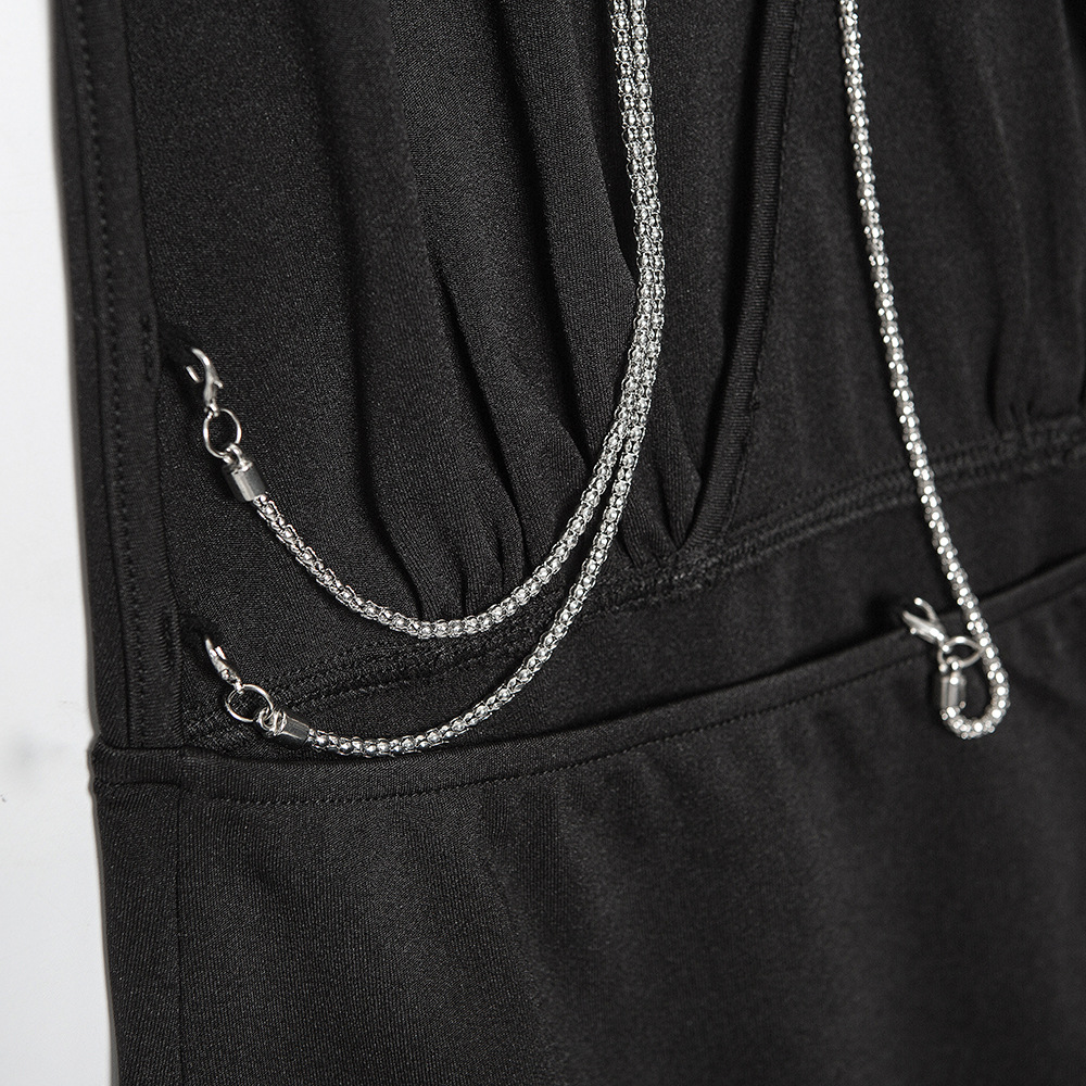 FREE SHIPPING !! V Neck Halter Open Low Back Metal Chain Dress JKP1039