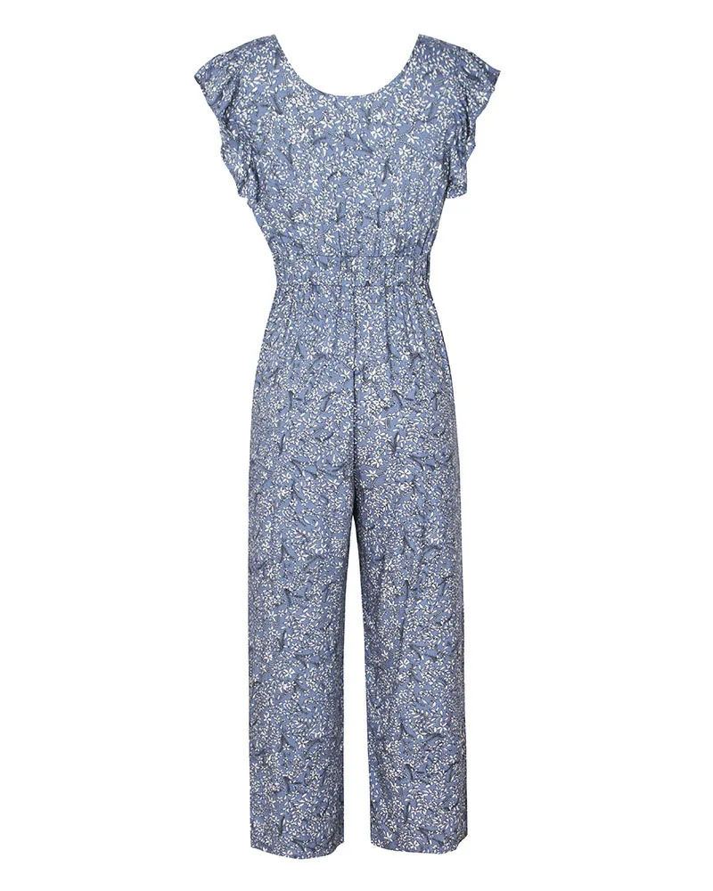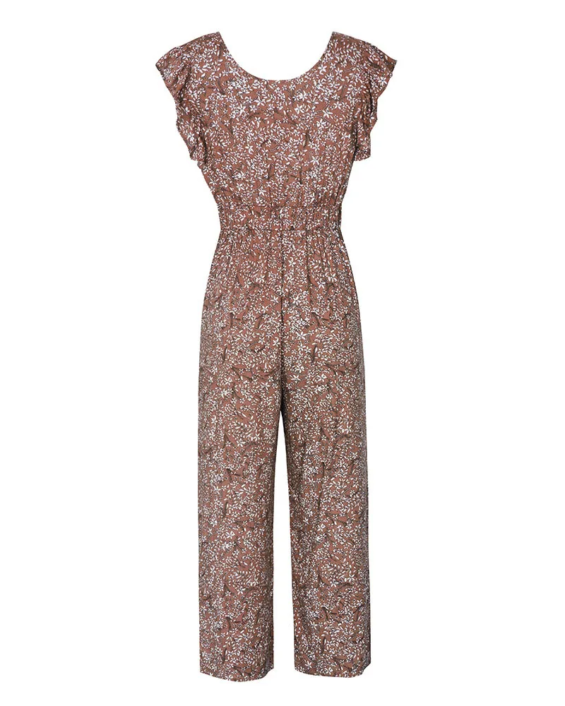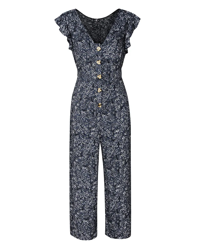 FREE SHIPPING V Neck Sexy Jumpsuit Short Sleeve Long Romper Summer Women Bodysuit Floral Print Pants Beach Coveralls Playsuit Female Frock JKP2724