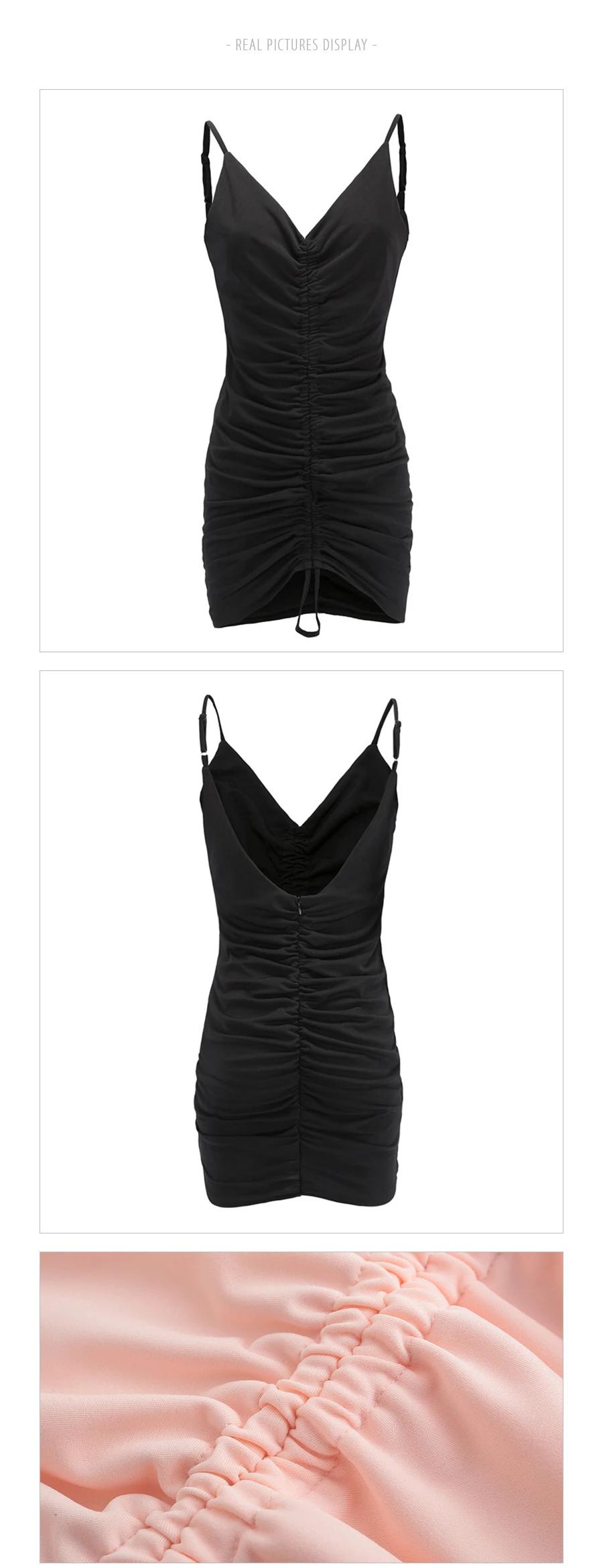 FREE SHIPPING !! V neck Sleeveless Women Dress Drawstring Sexy Mini Party Ruched Mesh Bodycon Dress JKP887