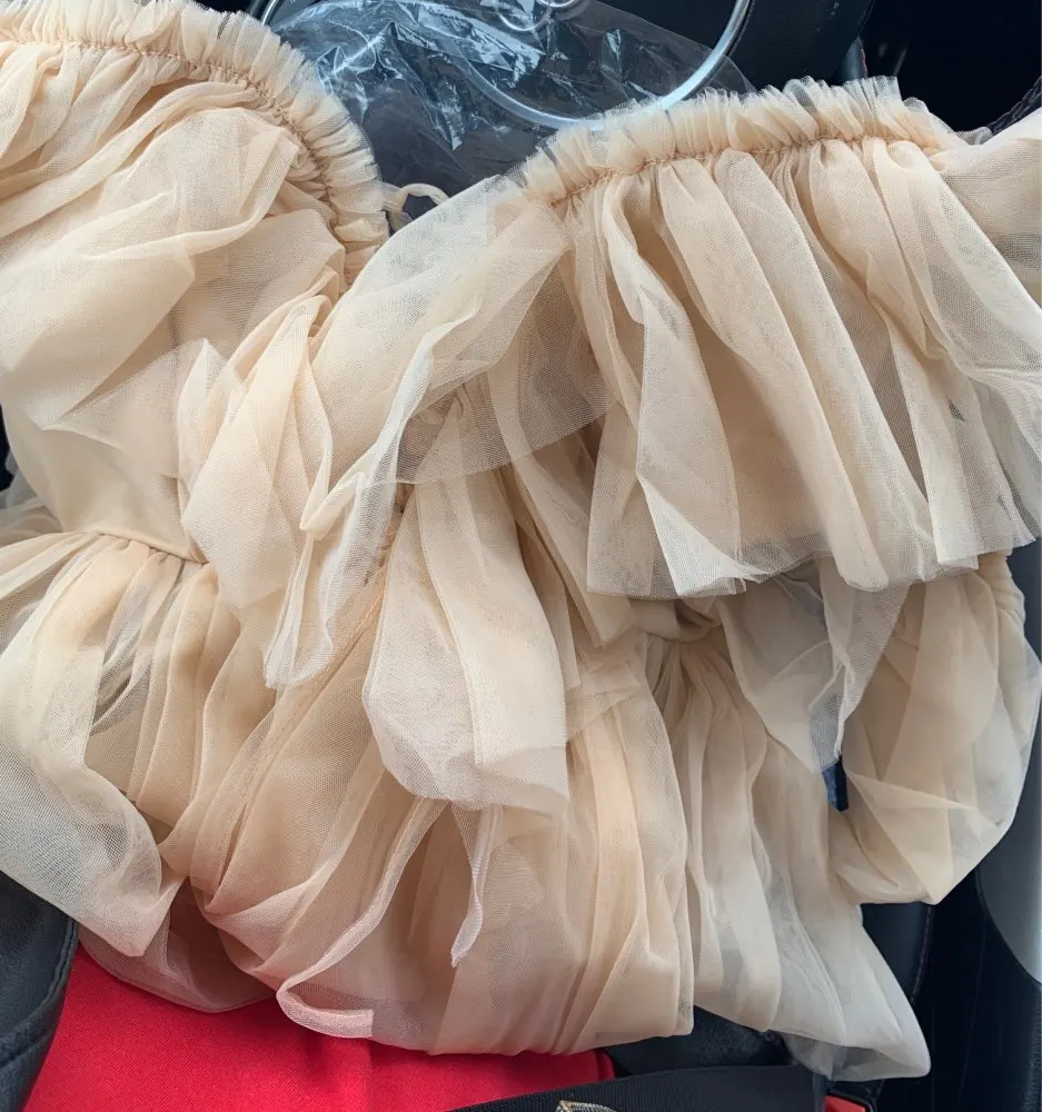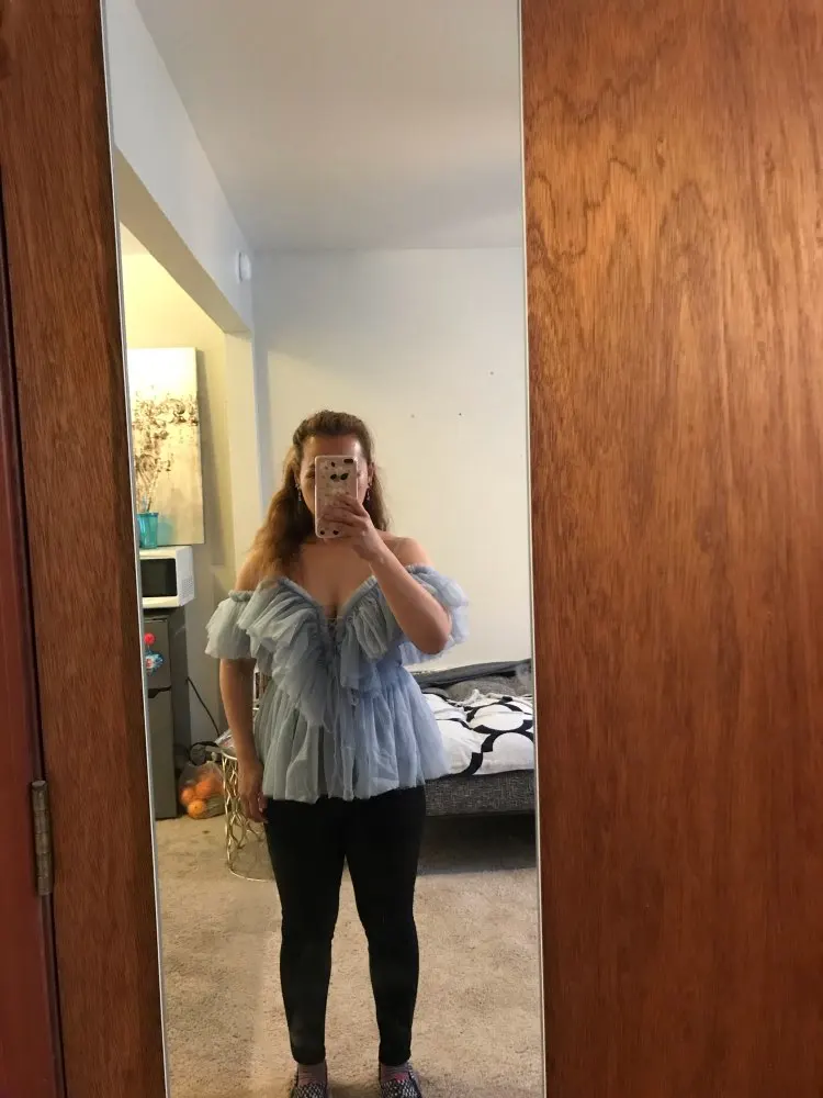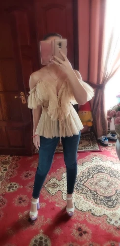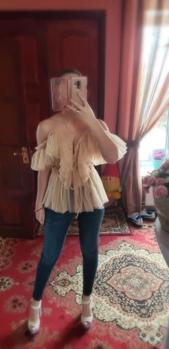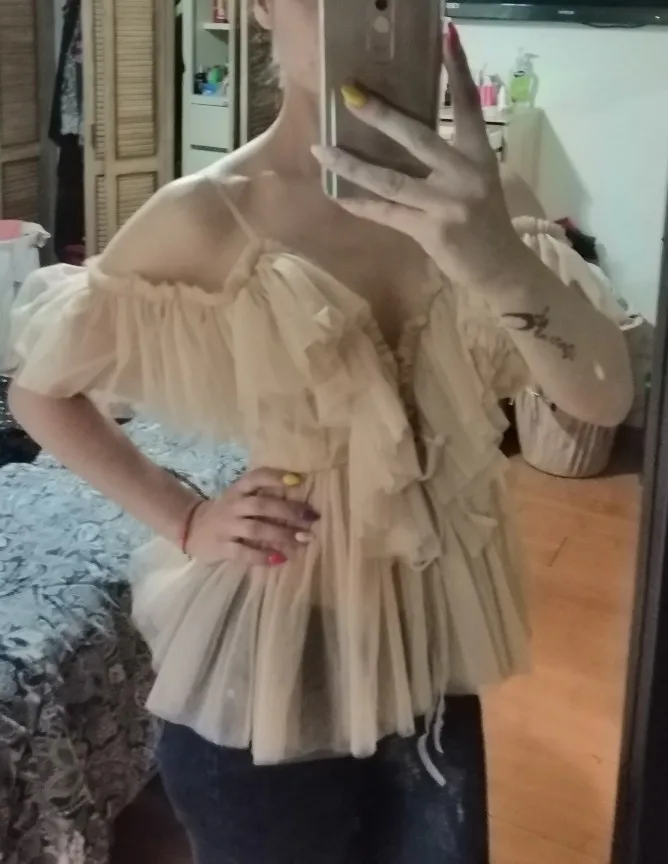 Very beautiful blouse, sweet and lush, the only iron is very difficult, because the material type of organza/mesh