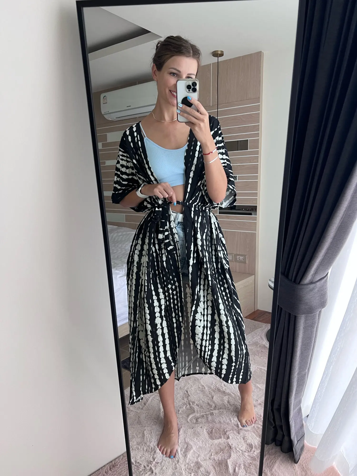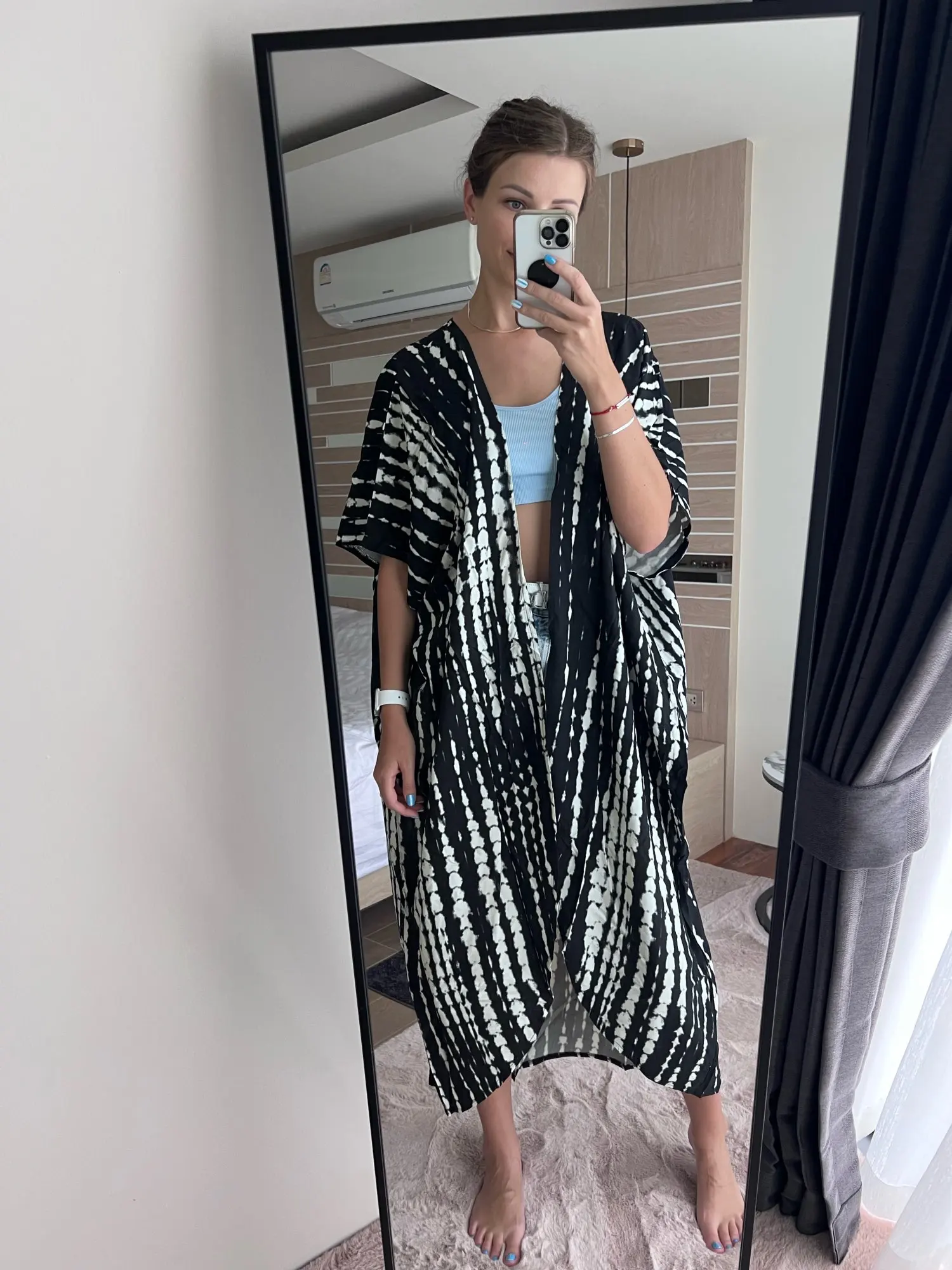 Seller has most amazing customer service. I'm so pleased with my kimono. Great quality, exactly like the picture, and truly saved me on a very wind day at the beach!! Thank you so much. Your kindness is appreciated.