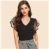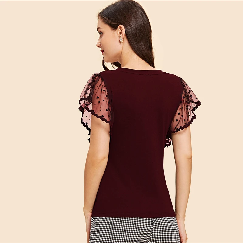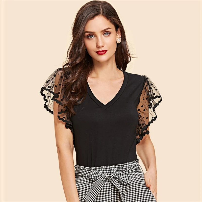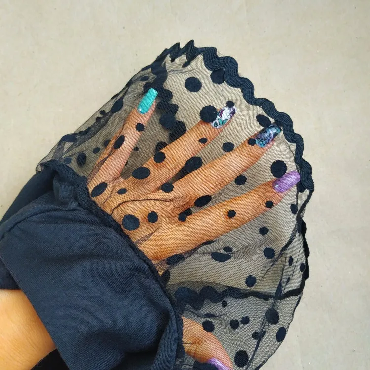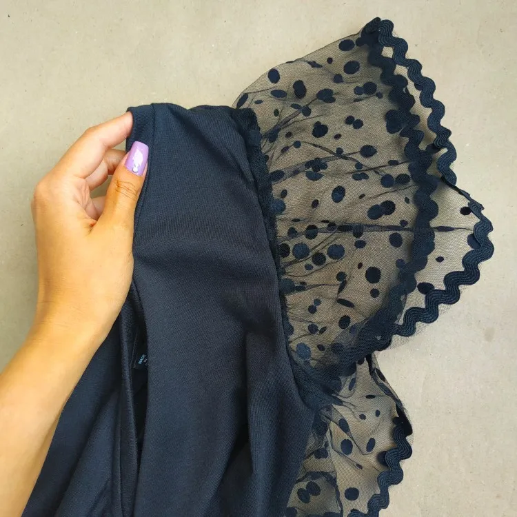 Beautiful t-shirt! Liked ryushiki-wings. The fabric is pleasant, rather dense, does not shine. Mittens made of mesh in peas. The wavy ribbon along the edge in one place was badly attached. The mesh is not pricked. T-shirt is long. Washed already 4 times, hands in cool water and the blouse all shed. At 86-72-95 took s and even there is a stock.