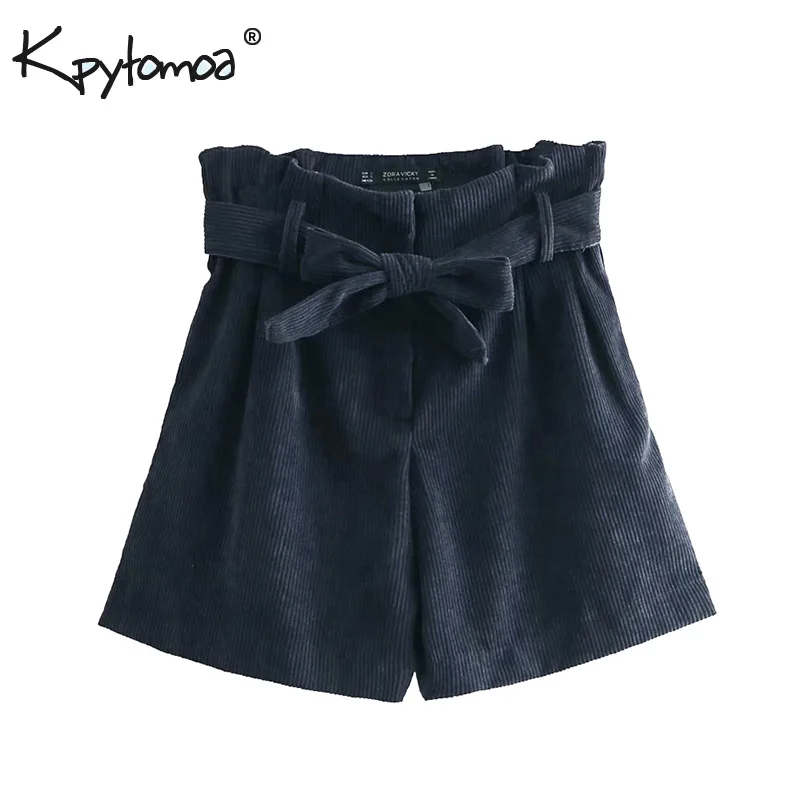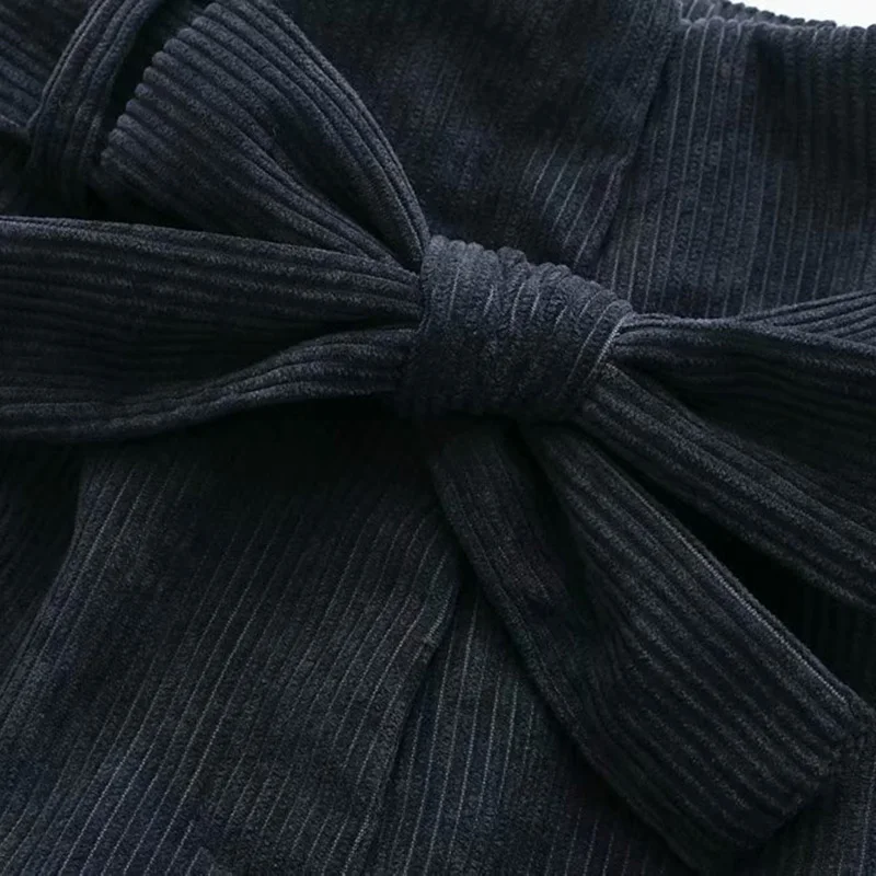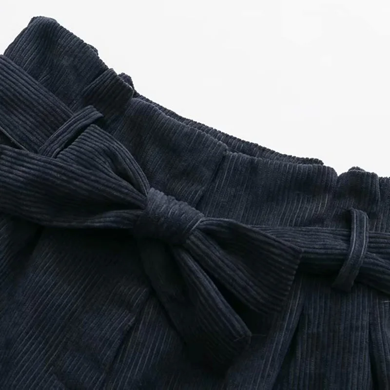 FREE SHIPPING Vintage Bow Tie Corduroy Shorts Pants Women 2019 Fashion JKP1479![]()