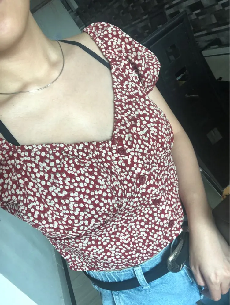 cute shirt, although I am busty and couldve gone with a Large overall good quality , the button is holding on for dear life bc it's a little small on my chest