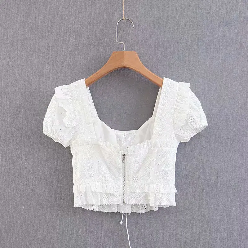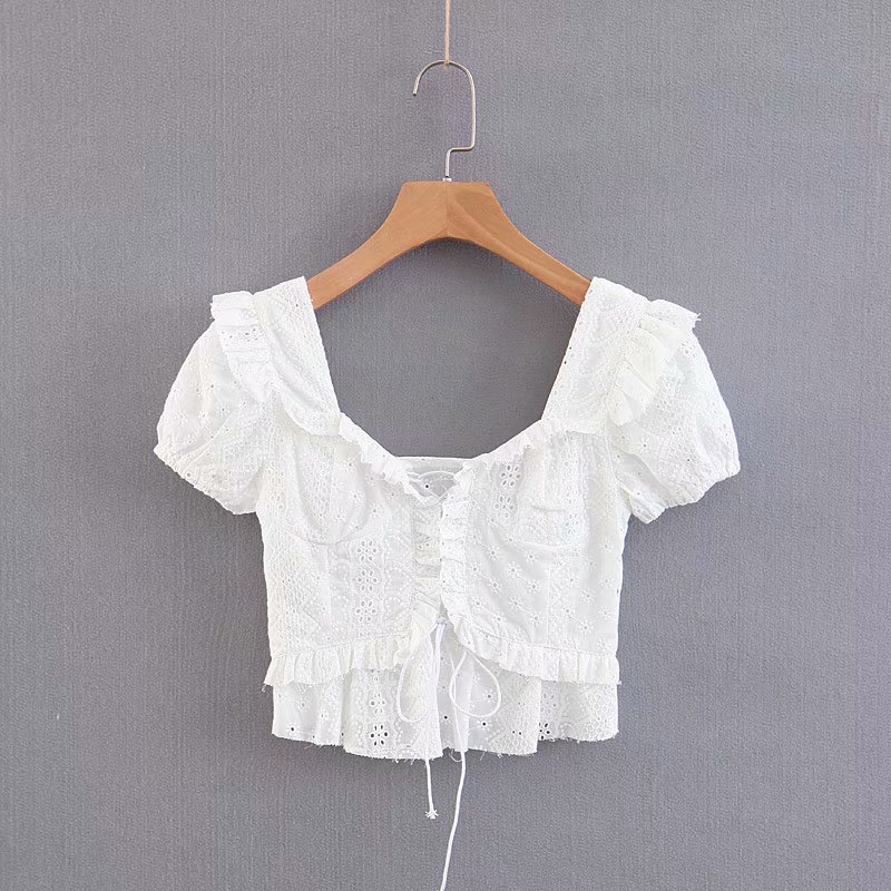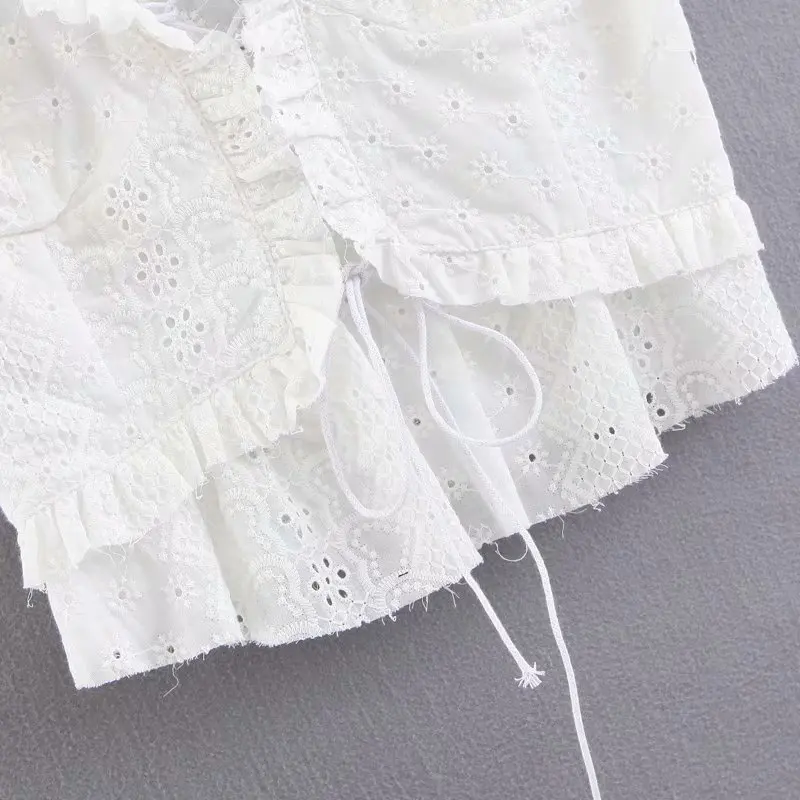 √FREE SHIPPING Vintage Lace Up Shirt Hollow Out Lace White Tank Top JKP1495