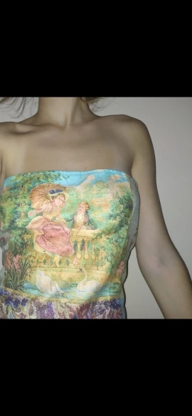 Muy linda, me gusta. Pedí talla mediana y me quedo muy bien, de busto mido 98 cm y de cintura 78 cm
