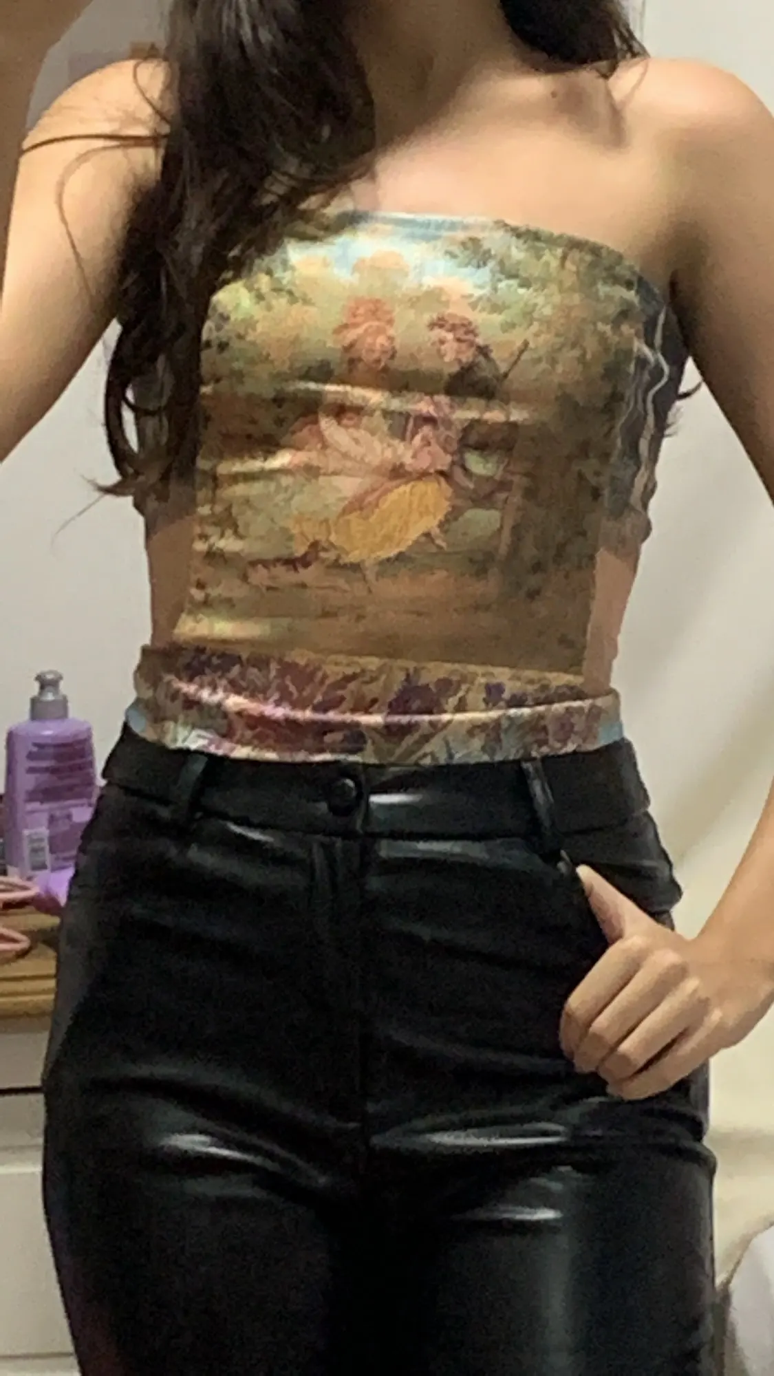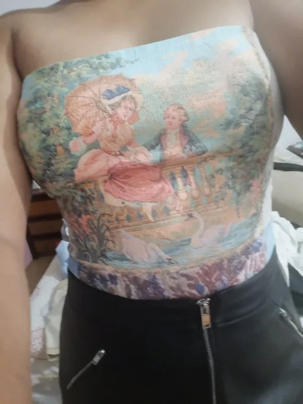 Maravilhosooo'm passionate. The fabric is nice even if not expensive, the printing is not so accurate but is too beautiful this top, like a glove. It is firm and comfortable. The tape that accompanies is of great quality, super soft. Buy won't regret. My measurements-90 bust 79 waist.