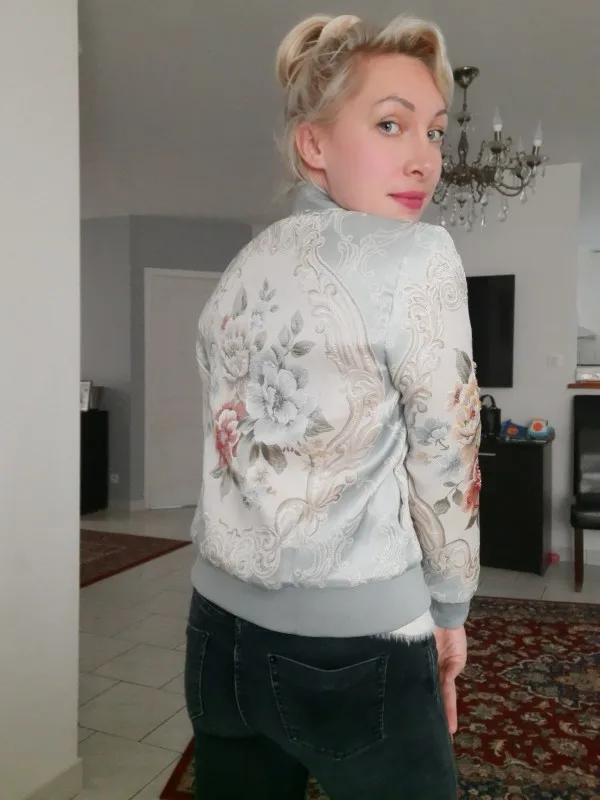 Bomber cool! Again my desire for expensive-richly showed itself :) has long been in desire, chose this model from very many stores. There was a low price, but at the same time good reviews and there were a lot of them. I did not regret that I chose this seller. The order was made 2.03, already 16.03 brought the courier to the house. Everything was tracked on the way. I wear the size M in life, after reading the reviews and asking the manager, I ordered L. On my parameters 90-75-88, height 157, the jacket of the village as I needed: Nowhere does not press, does not pull and slightly freely, but not to the level. Quality chic! The Jacquard is a little harsh, but it's even good. Beads are sewn well, after the first wash in the machine on a delicate mode, everything is in place. Sleeves of adequate length, cuffs are wide enough, do not press anywhere. Lightning looks very impressive, will not break in the first month, I hope. The thing looks very cheap, more expensive than its price. I gave only 2093.89rub at a discount of the seller. Many sellers at times more expensive, and in the reviews the same