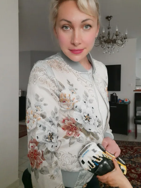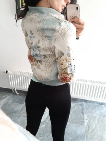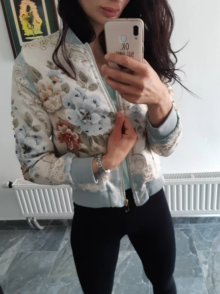 Three weeks in Moscow, excellent quality-seams, lining, embroidery beads/do not dig. Size S on my 57 kg with an increase of 170 is excellent in volume, slightly short sleeves, but does not bother, I want the second color. Boudoir bomber)