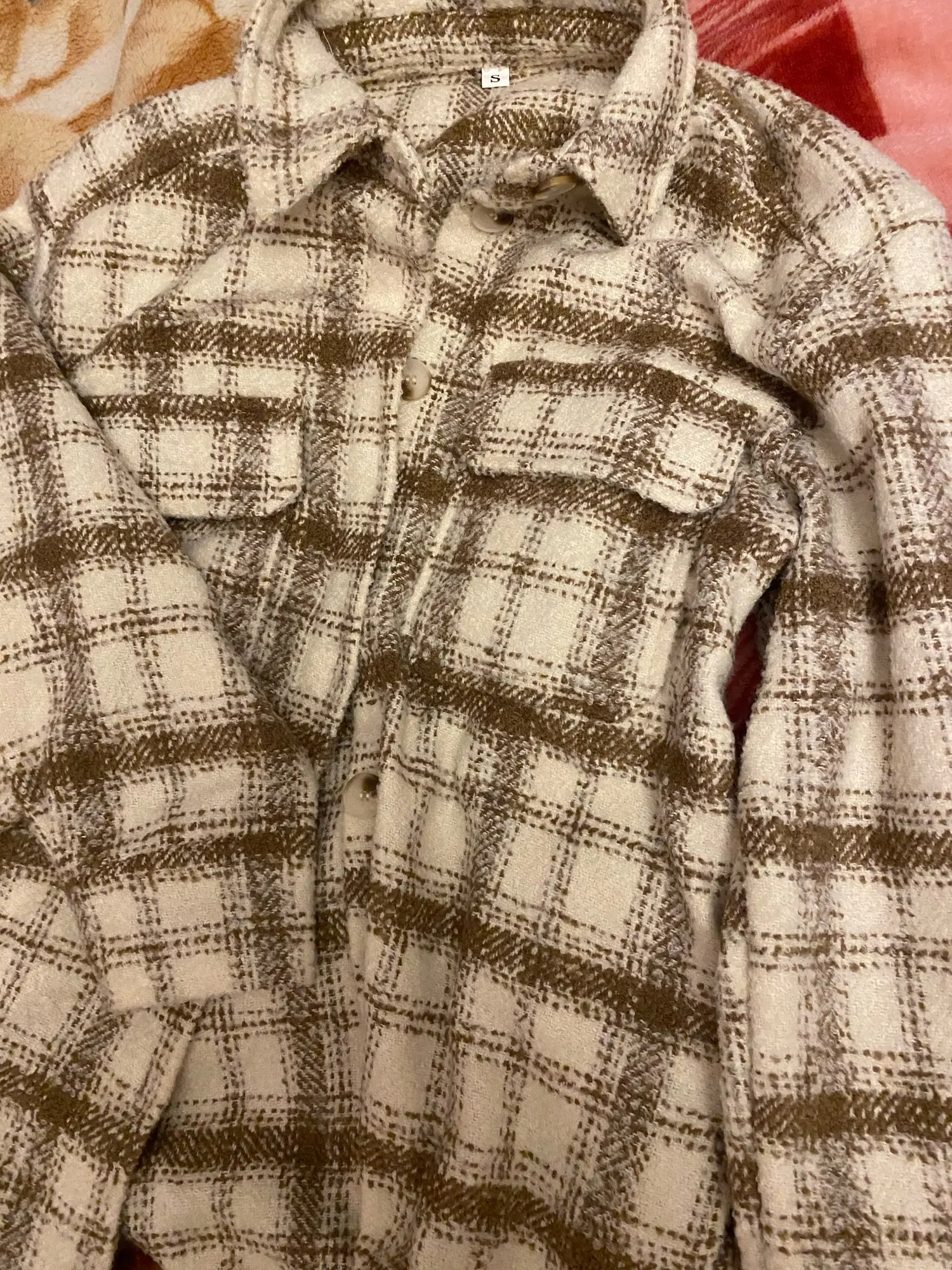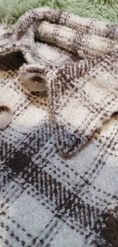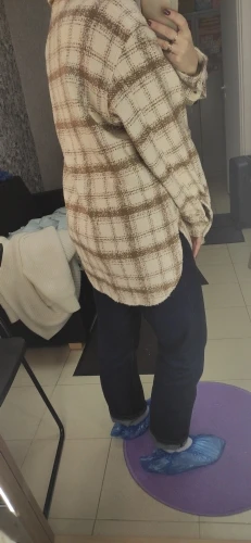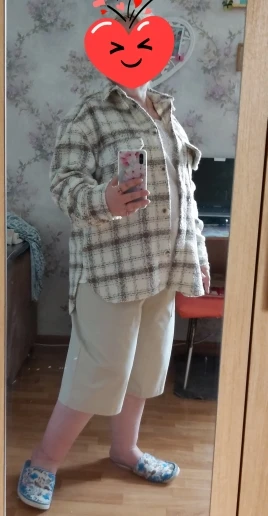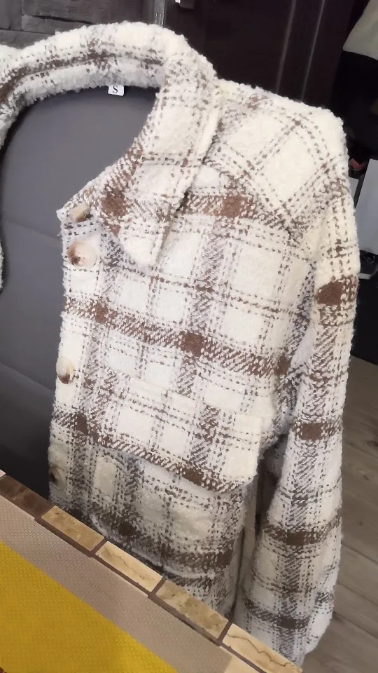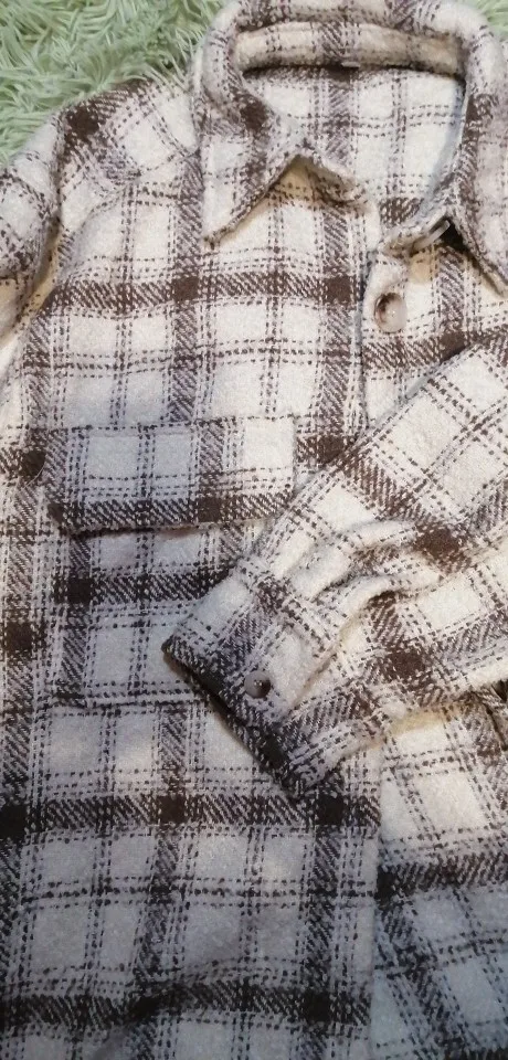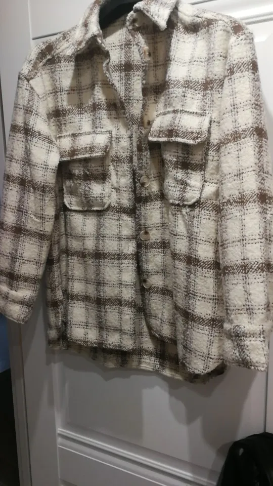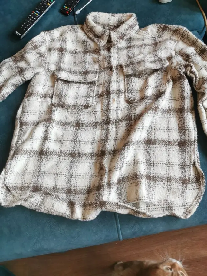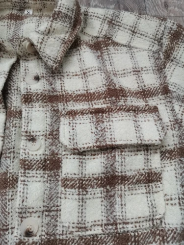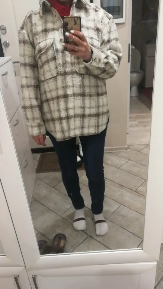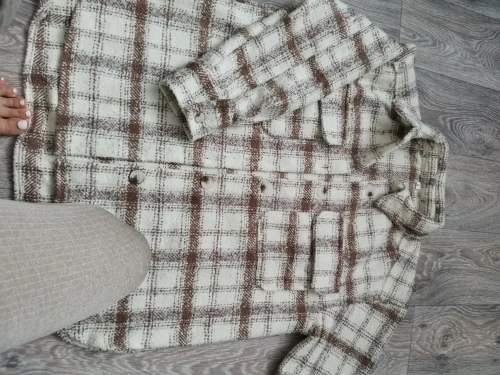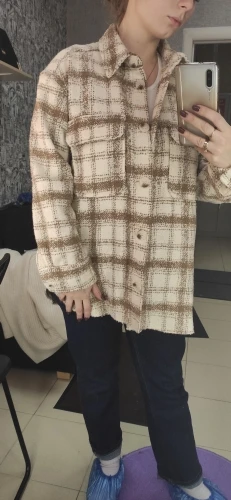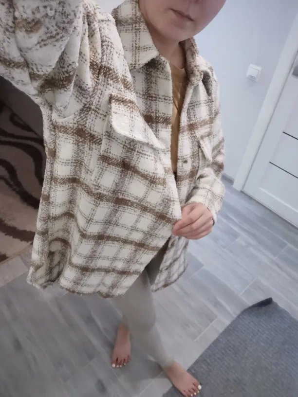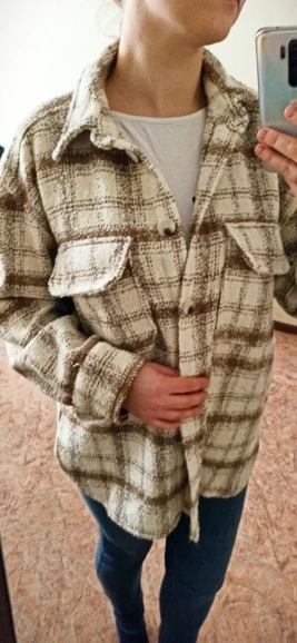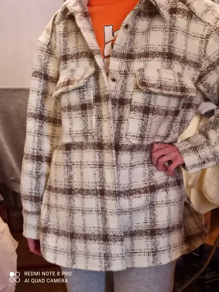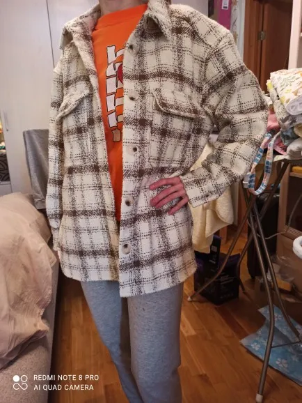 Cool, warm shirt. The size is the same, at 42-44 came S. The material is soft, like a bouclé, looks stylish. Delivery is very fast. Thank you very much.