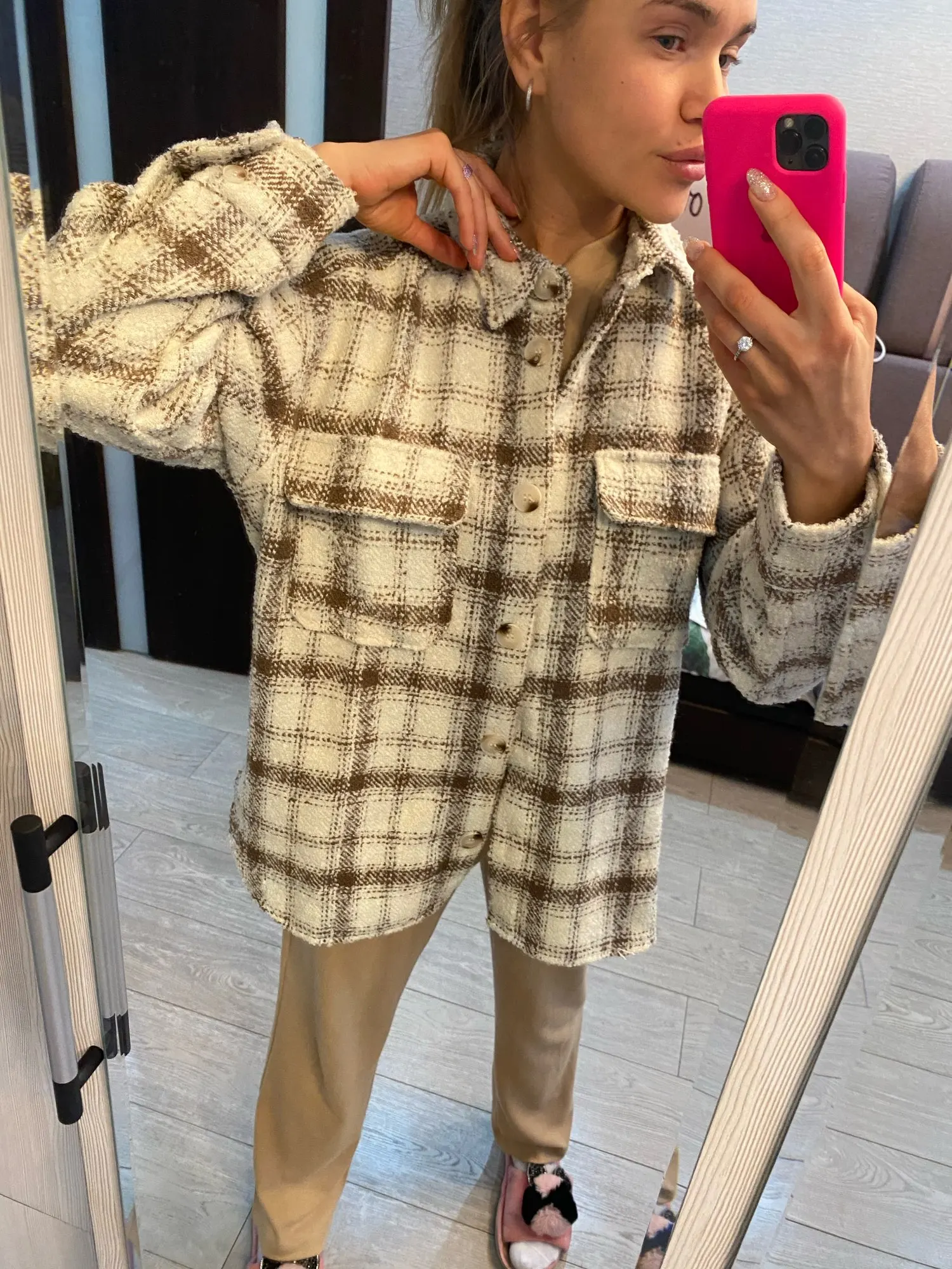 Рубашка потрясающая!Тёплая, уютная.Продавцу спасибо за помощь в выборе размера.Хоть я и не очень стройная,но смотрится она на мне классно.Все в восторге от моего выбора.Рекомендую.