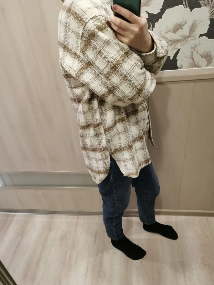 Very cool jacket, style and color as in the picture, there was no smell. The height of 158 cm is long, but nothing is super quality. A little pricked, it is better to give something with a long sleeve. Packing is not very, but this is a question to the Mail, the parcel is somewhere apparently carried, but the jacket was not damaged