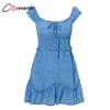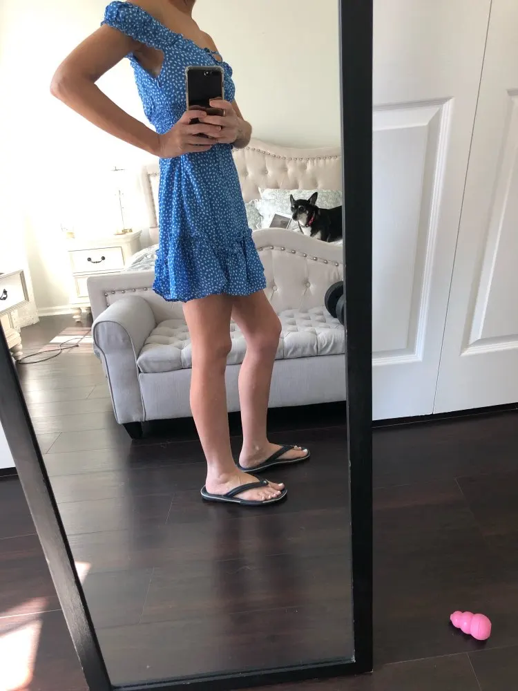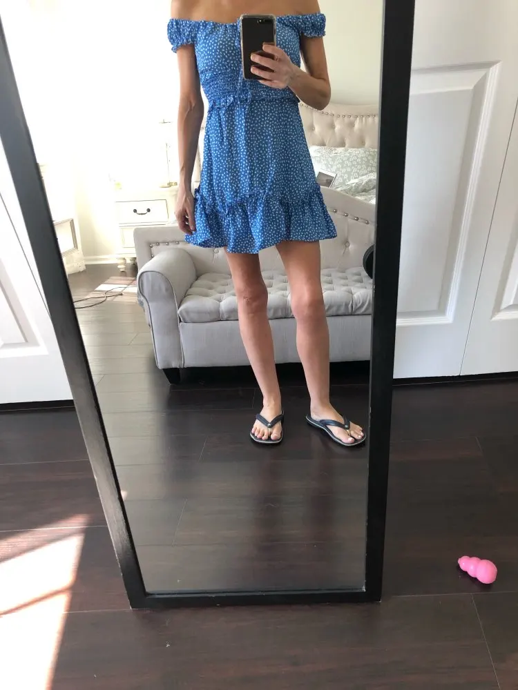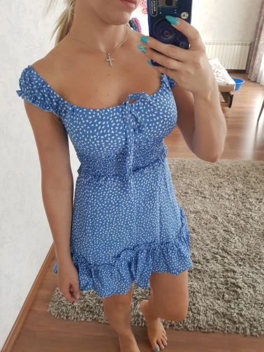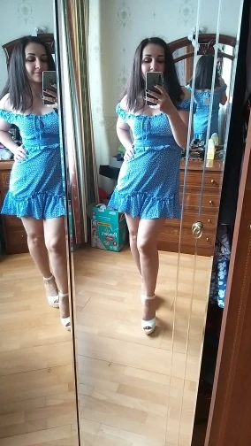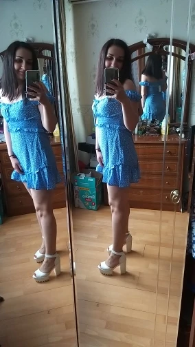 Excellent dress, for hot summer, suitable, for summer walks. The fabric is chiffon, the color is beautiful gently blue, closer to blue. The figure looks feminine and romantic. I took m on the parameters 90-68-94, everything came up. thanks to the store, a good store.