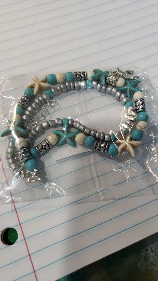 Shipped on time, nice leg foot bracelet, worth tis money, time will show quality.