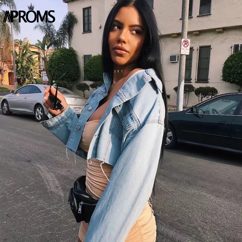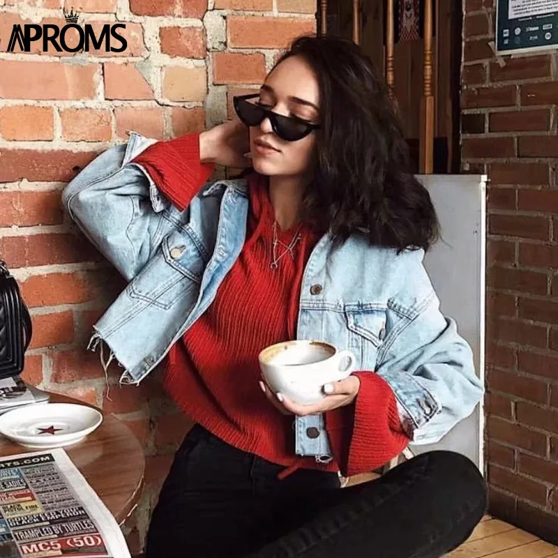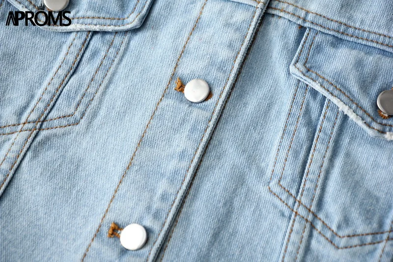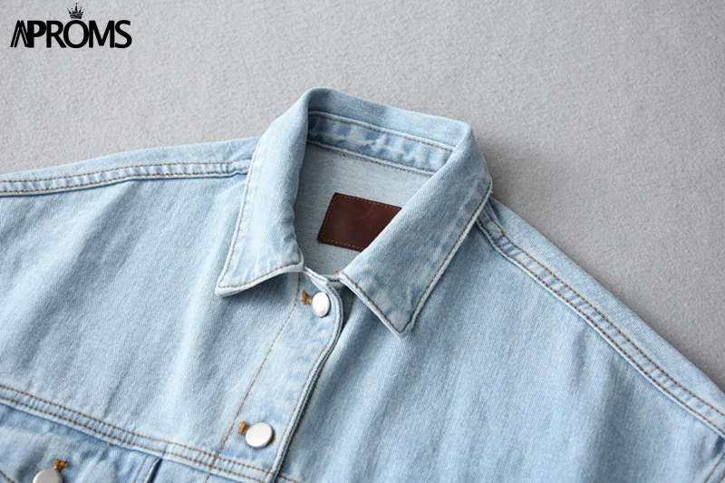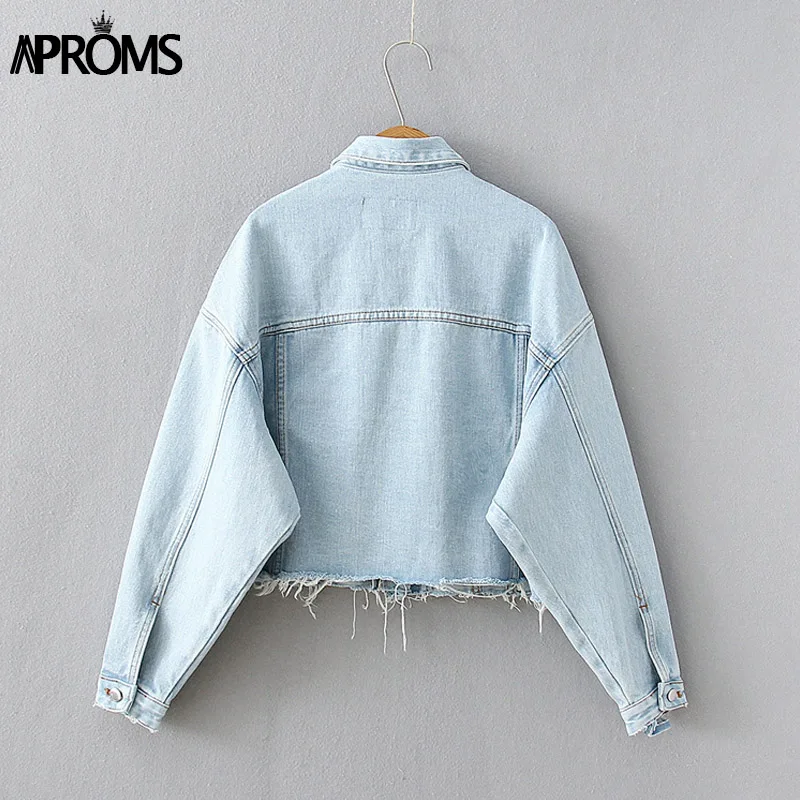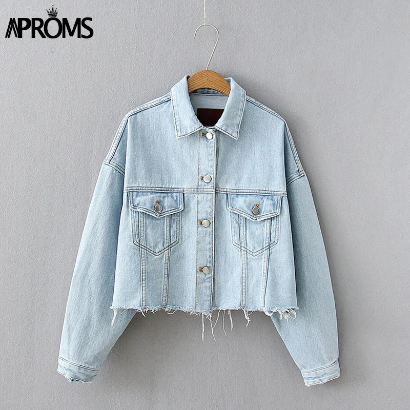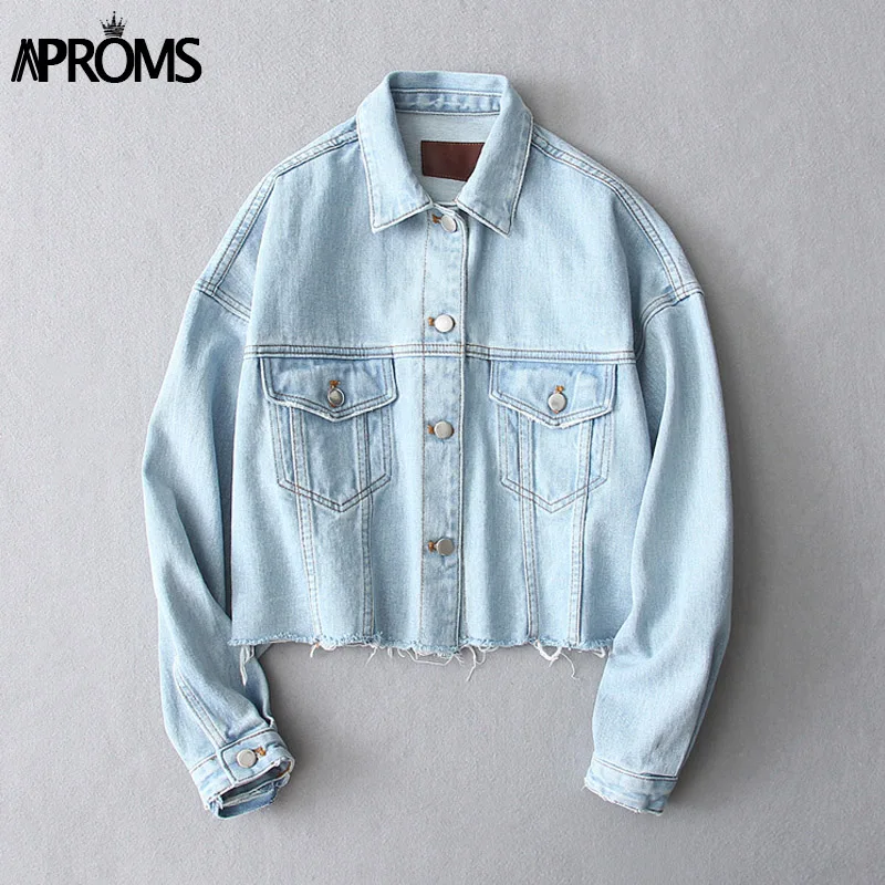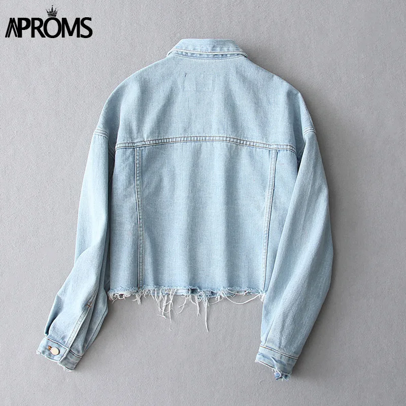 FREE SHIPPING Vintage Women Autumn Winter Pockets Cropped Jeans Jacket JKP3697