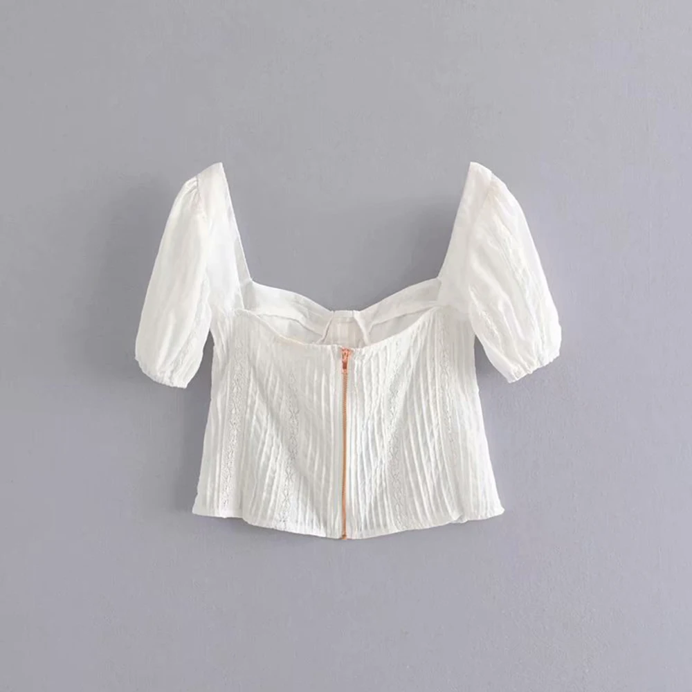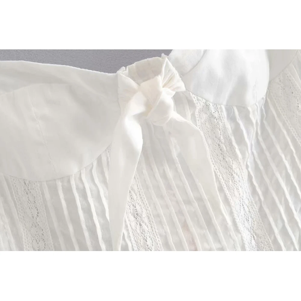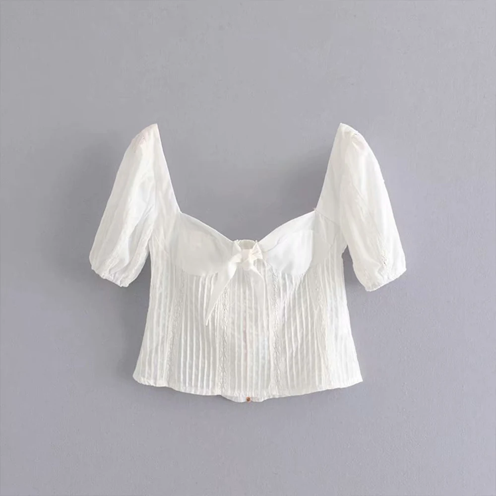 FREE SHIPPING Vintage Women White Cotton Lace Bow White Crop Top JKP3108