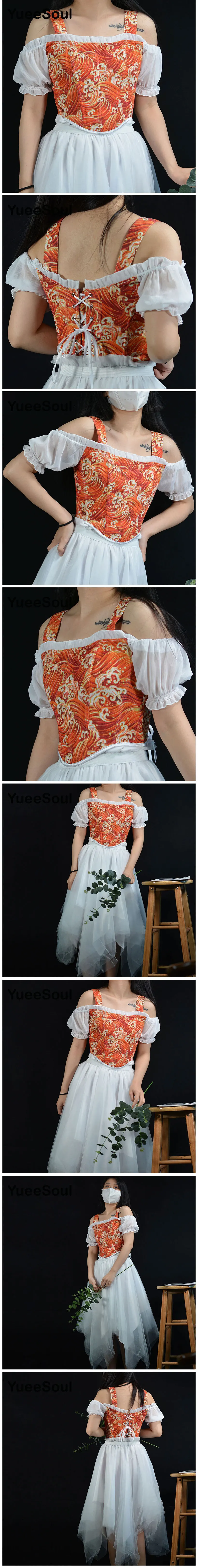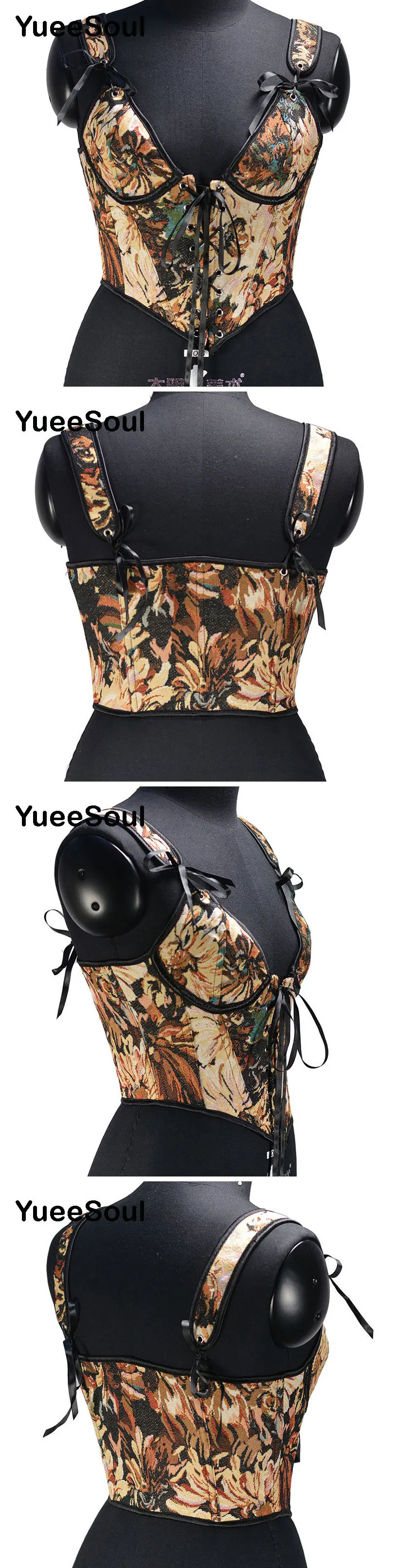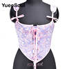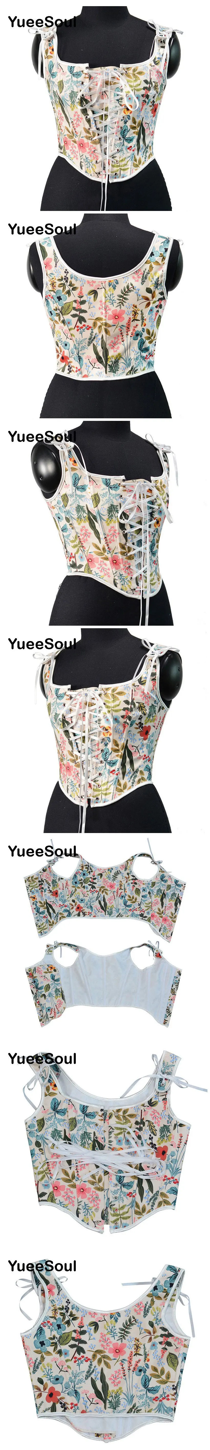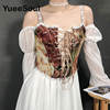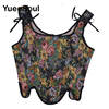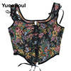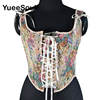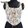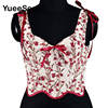 Free Shipping! Vintage Women’s Corset Printed Sleeveless Bandage Crop Top Y2K Sexy Slim Fit Bustier Camisole JKP7234
